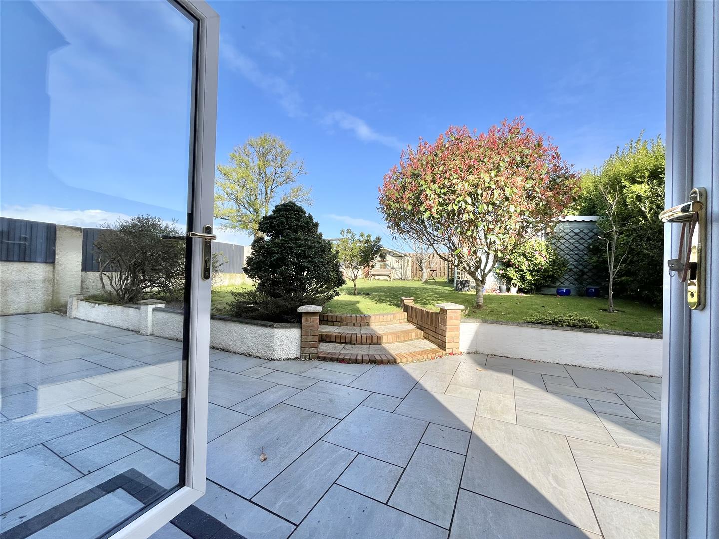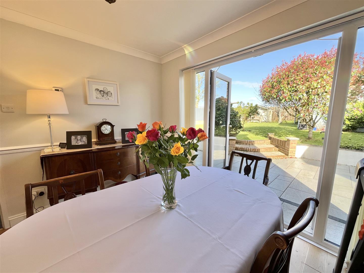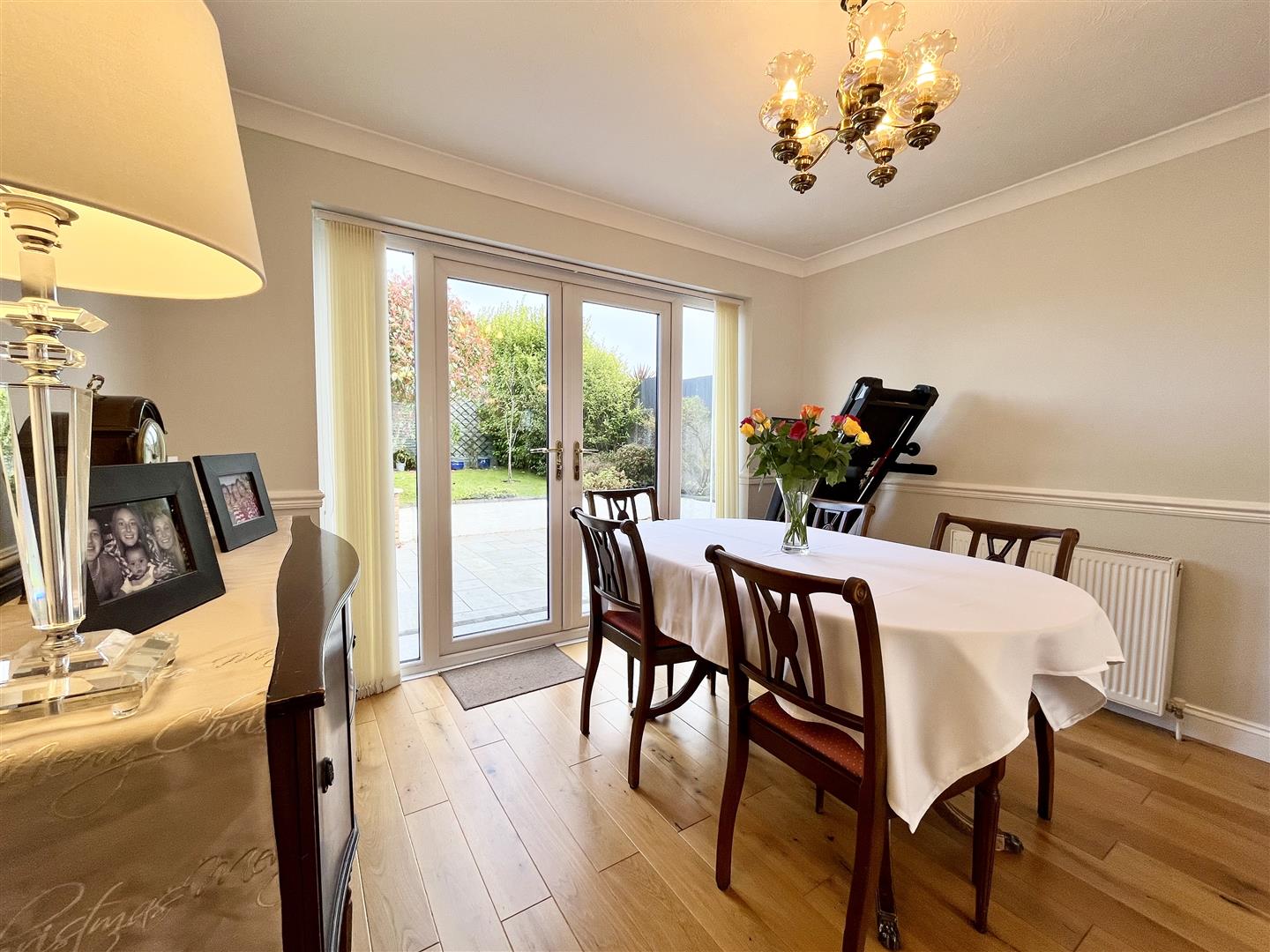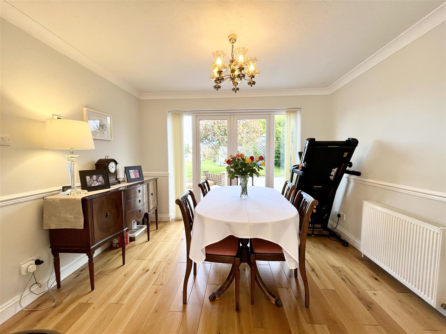 A bright and inviting dining room with double glazed French doors opening directly onto the garden, allowing natural light to fill the space while providing a pleasant outlook and easy access to the outdoor area. The room offers ample space for a dining table and chairs, making it an ideal setting for family meals and entertaining guests, with the garden access enhancing the sense of indoor-outdoor living.
