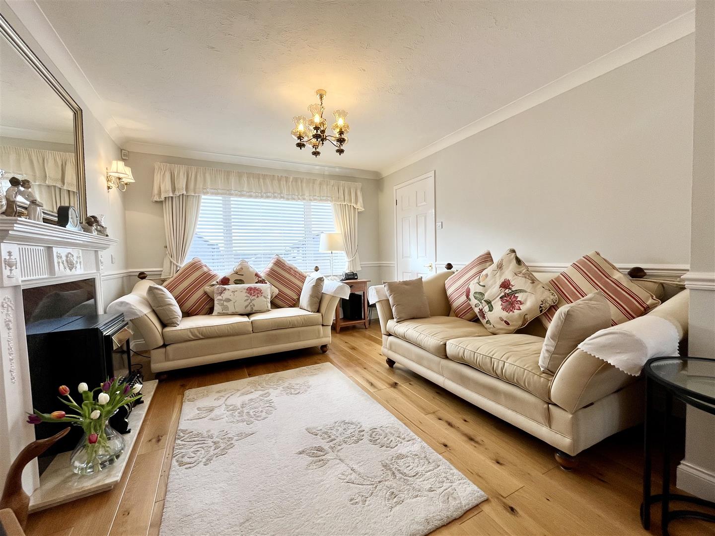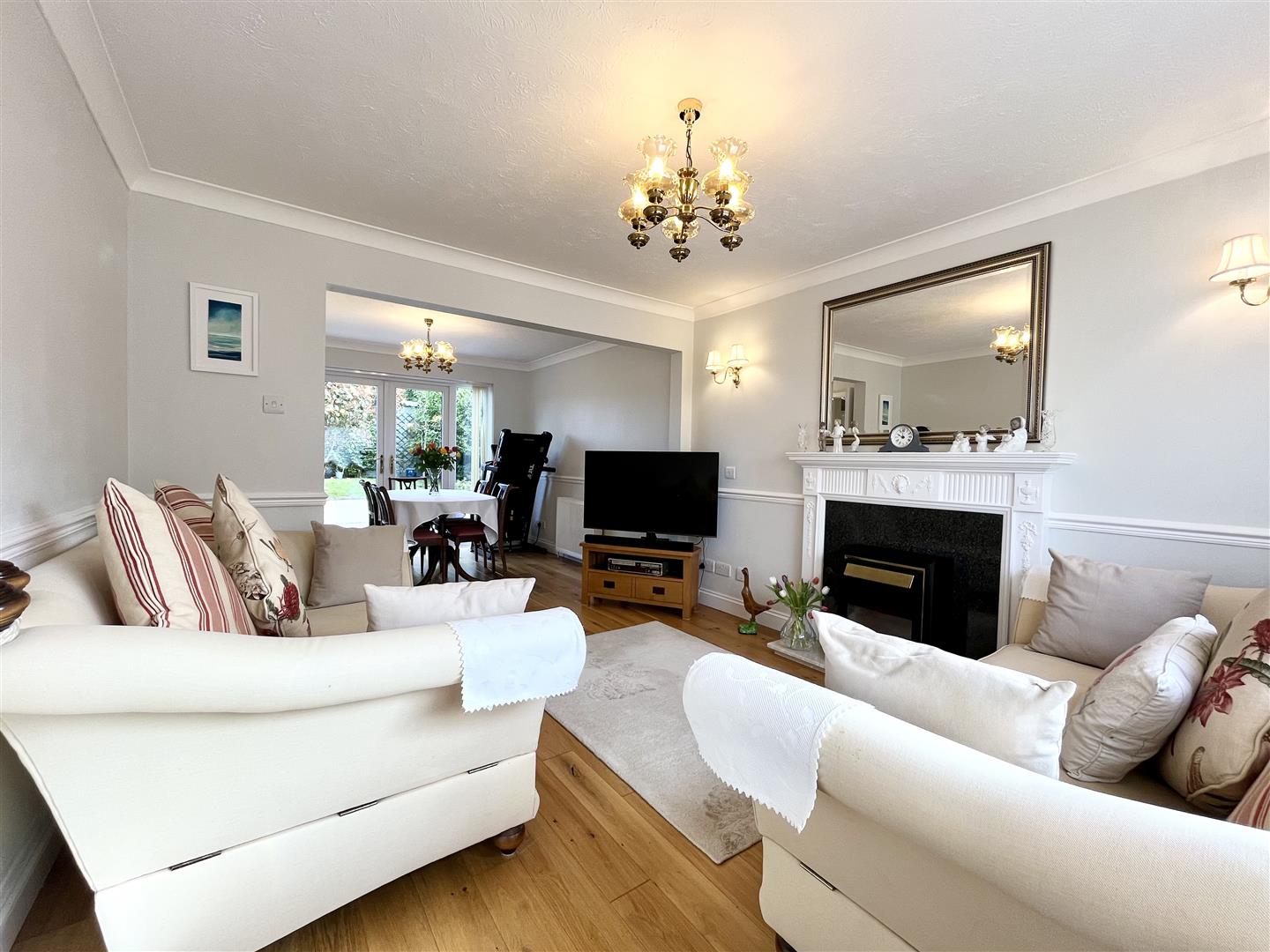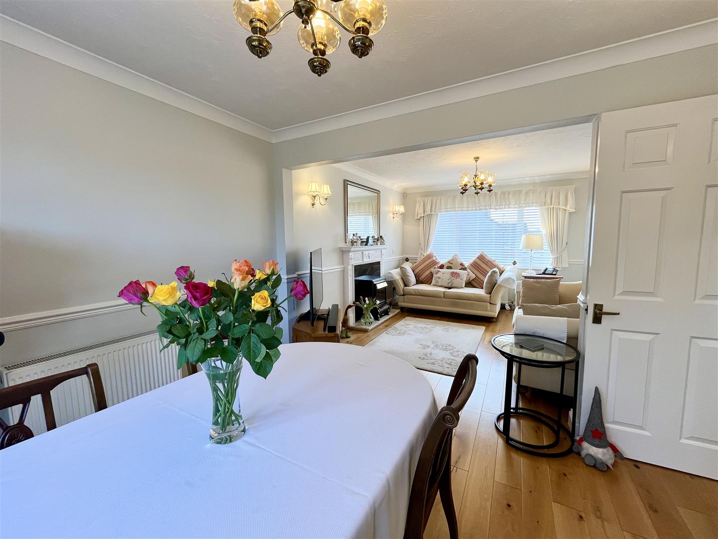 A welcoming living space with a double glazed window to the front aspect. The room is centred around an attractive feature fireplace complete with hearth, decorative surround, and electric heater, creating a cosy focal point. Dado rails add character and enhance the rooms traditional charm. This comfortable room opens to the dining space and offers an ideal setting for relaxing or entertaining.