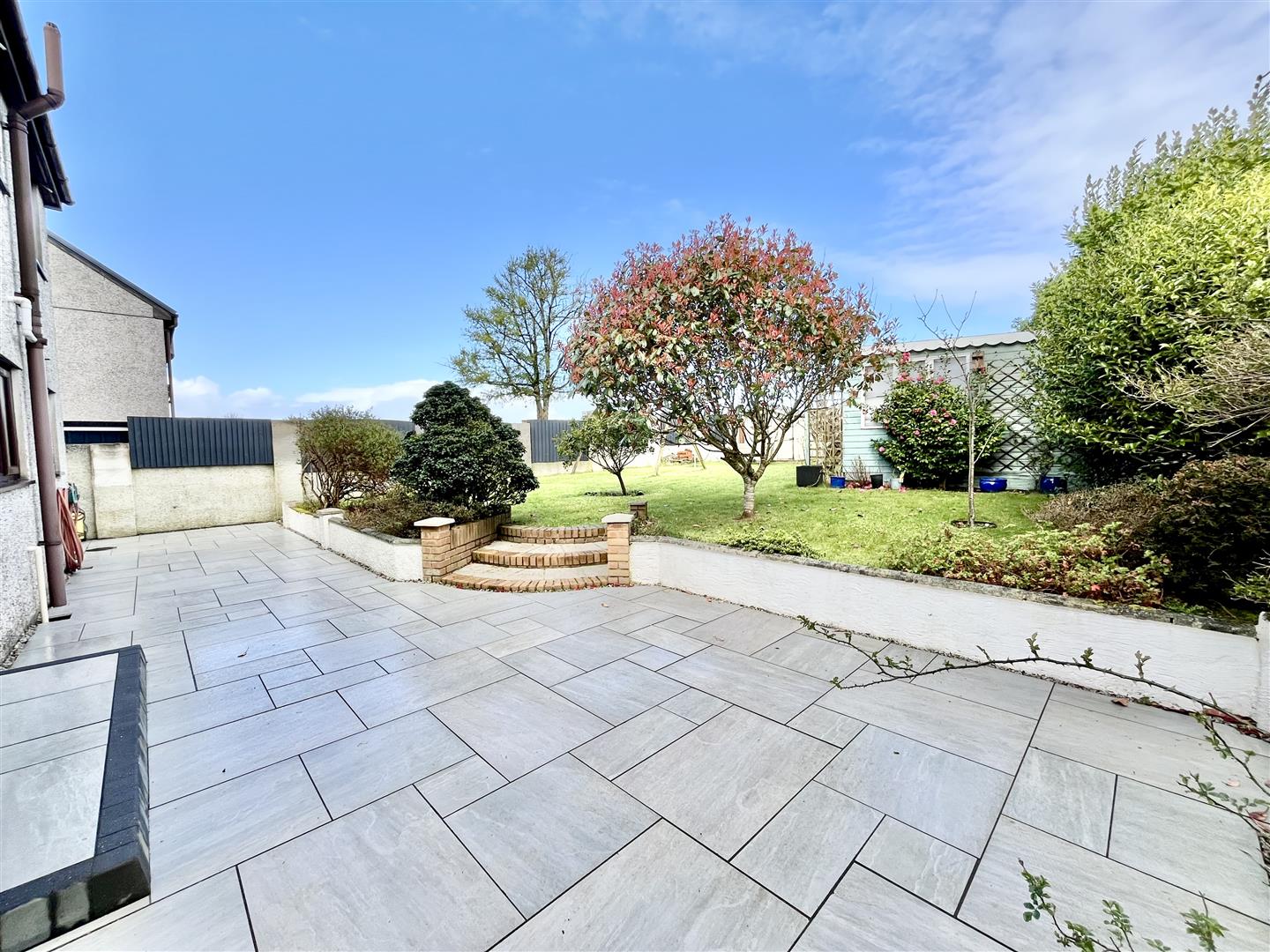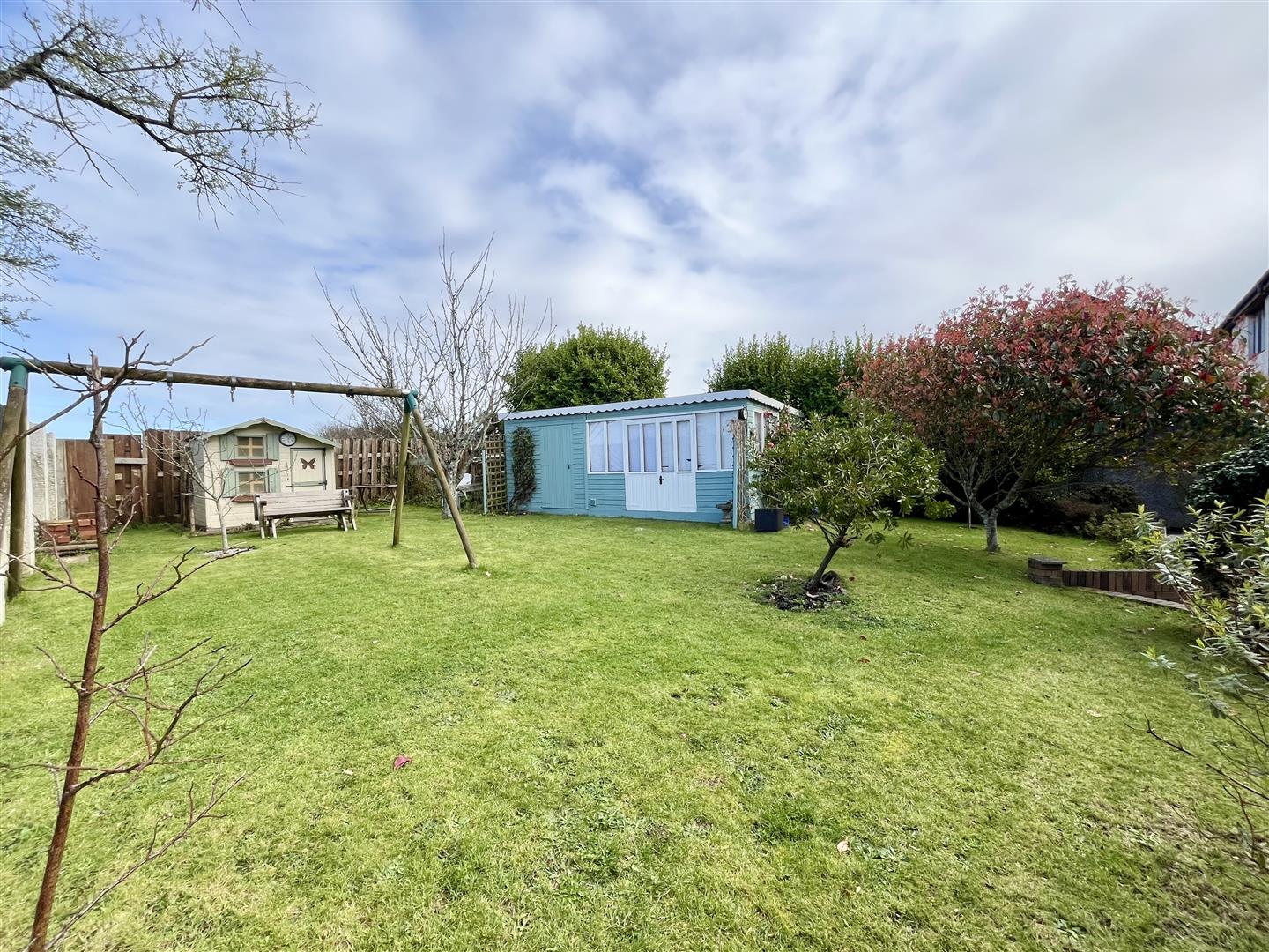 To the rear, there is a large enclosed garden offering an excellent space for outdoor living and family enjoyment. A portion of the garden has been thoughtfully laid to create a lovely patio area, ideal for seating and entertaining, while the majority is laid to lawn, making it perfect for children and pets to play. The garden further benefits from a substantial summerhouse and a useful shed, providing additional storage and versatility.