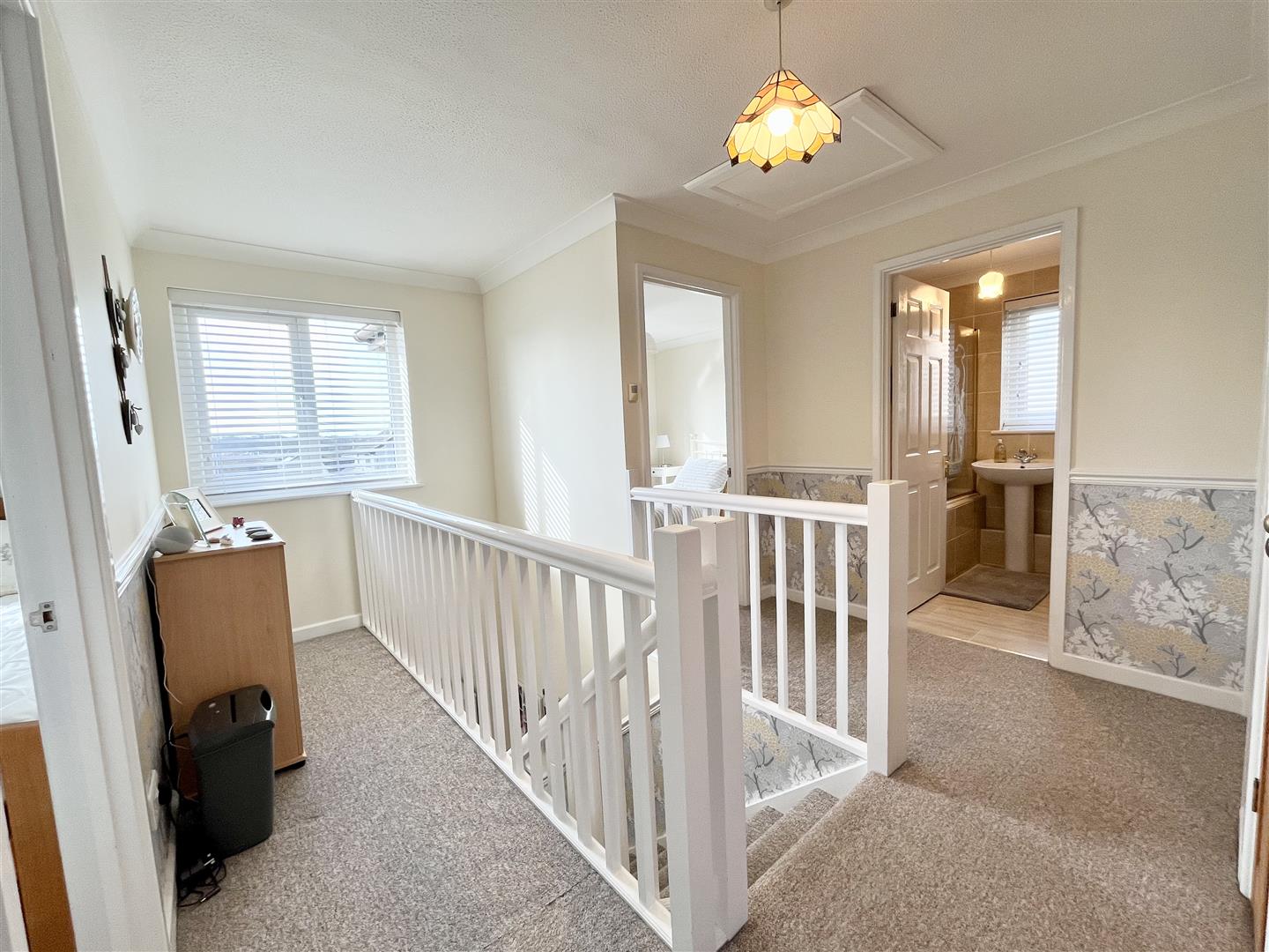 A large bright landing with a window to the front, airing cupboard, loft hatch with pull down loft ladder and doors into family bathroom and four double bedrooms.