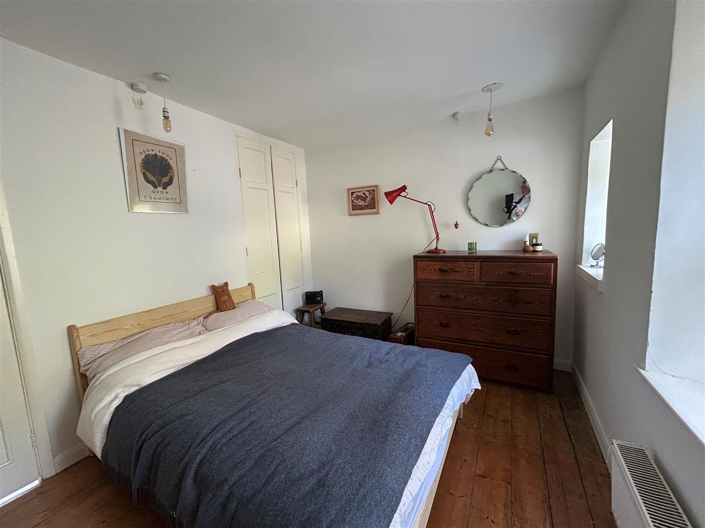 With built-in wardrobe, stripped wood flooring and two windows to the rear aspect.