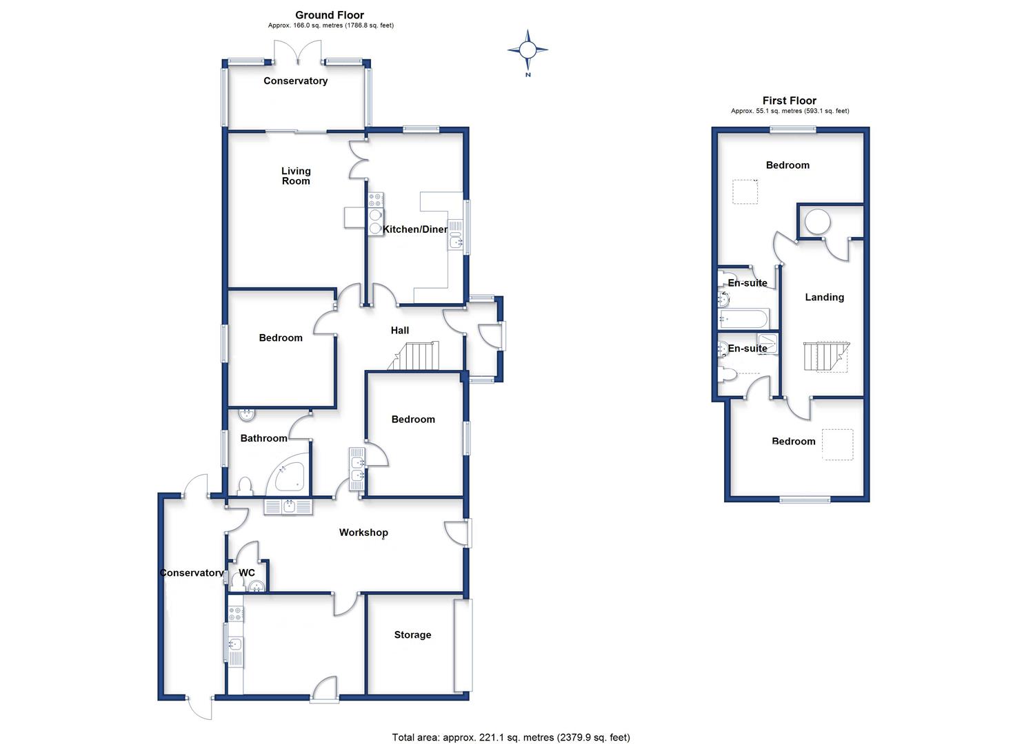 The accommodation, in brief, on the ground provides an entrance porch, generous hallway, lounge with wood burner, leading out onto the conservatory, kitchen diner, two bedrooms and a bathroom. On the first floor there are two further bedrooms, both of which are en-suites. There is a large utility area leading onto a workshop area, with an extra mezzanine level.