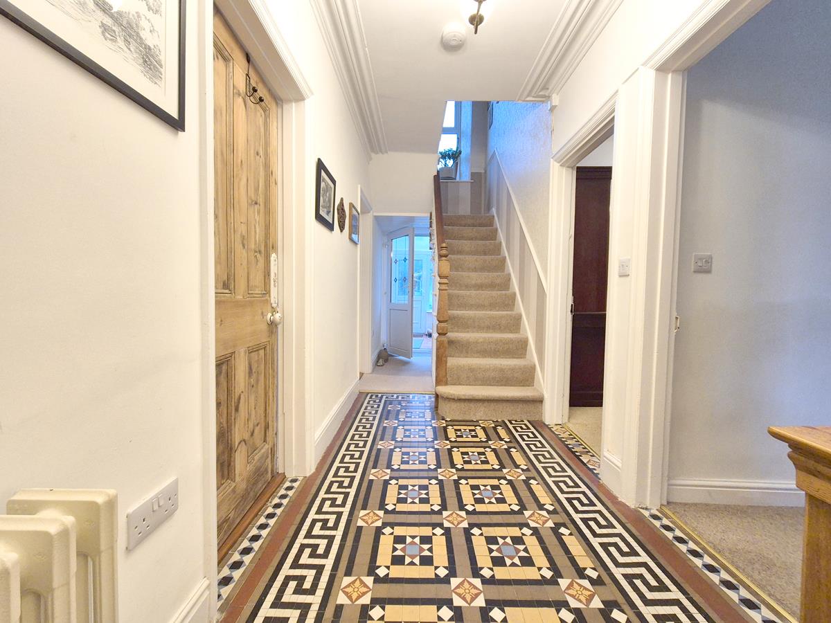 With attractive mosaic tiled floor, stairs to the first floor with cupboard under and doors to the lounge, snug, kitchen/diner and conservatory.