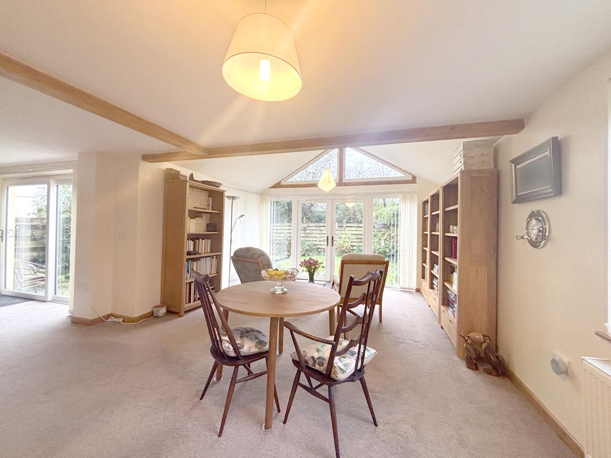 A dual aspect space with window to front and sliding doors to the rear garden. Archway back through to the entrance hall.