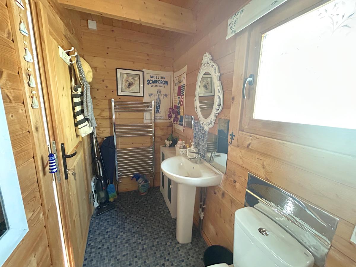 The accommodation in brief provides an entrance area/sun room, nicely fitted kitchen, two double bedrooms and a lounge with patio doors leading out on to the garden. To the outside there are gardens to the front and rear, the latter of which has a lovely garden room with shower room at the rear.