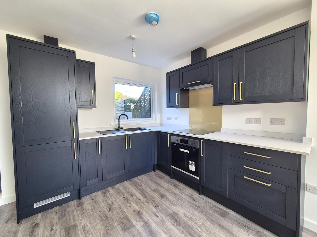 A dual aspect room with outlook to the front and rear. The kitchen area comprising an attractive kitchen incorporating a sink unit with drainer and mixer tap over, cupboards and drawers under and wall cupboards over. Built-in appliances include an oven with hob and hood over and a fridge freezer. There is a built-in cupboard and an understairs cupboard. Opening to