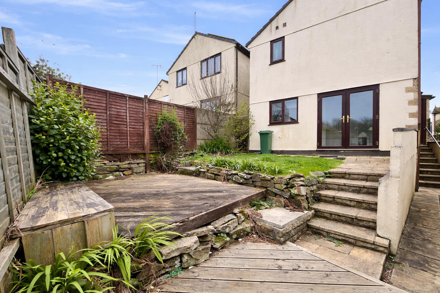 A driveway provides for off road parking and leads to the garage. To the side of the property is a gated gravelled enclosed pathway which forms a useful area for bins and recycling. The gardens lie to rear of the property and comprise of a decked seating area, small patio with the garden being mainly laid to lawn. There is a useful timber shed and pedestrian access into the