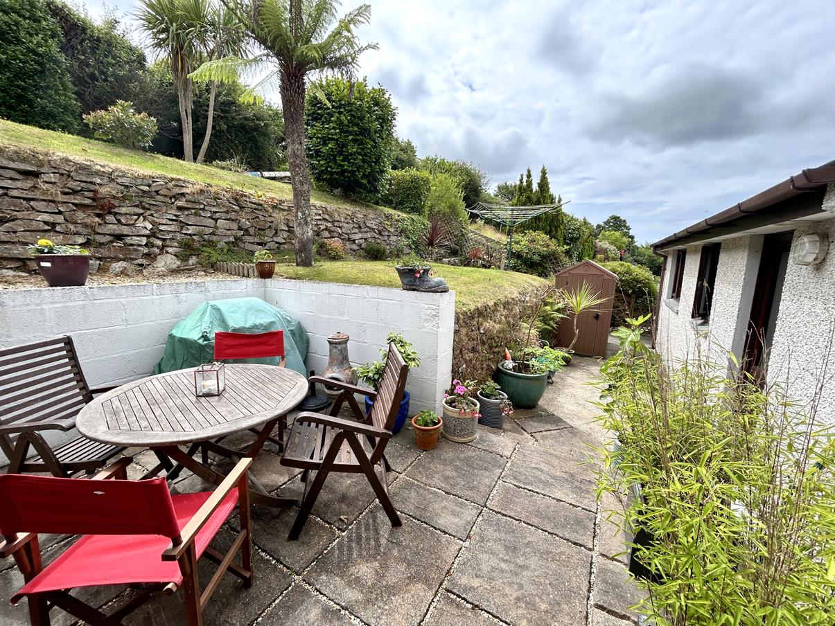 To the front of the property there is a lawn planted with a mixture of trees and shrubs. To the rear of the property there is a terraced garden which is enclosed by hedges and fencing and, from many points, offers a good degree of privacy. There is an of area of lawn and beds housing mature plants and shrubs. From many points a fabulous view is enjoyed over the top of the property to the lovely rural outlook. Towards the rear of the property there is a patio seating area with glazed doors leading back into the sun room. There is an outside tap.