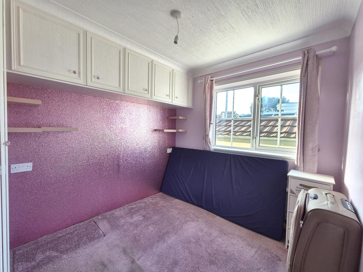 With outlook to the rear and having an array of built-in cupboards and wardrobes.