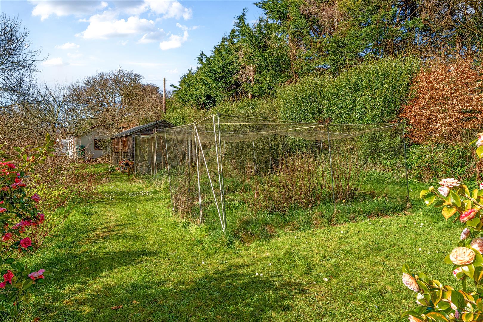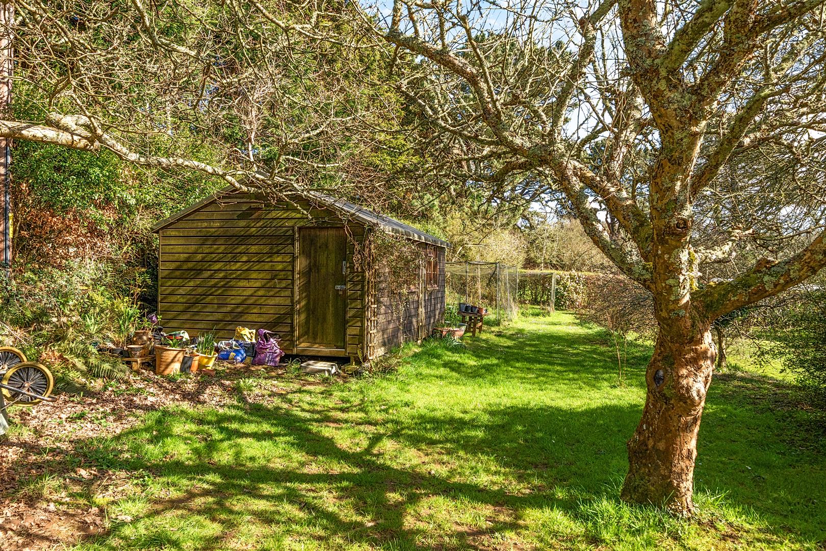 The rear gardens are an absolute treasure with large expanses of lawn interspersed with a host of mature trees, shrubs and specimen plants. Enjoying exceptional degrees of privacy the gardens are thoughtfully arranged with a sheltered produce area and a fruit and vegetable cage which would seem likely to appeal to those seeking a more self sufficient and sustainable way of life These are complemented by a nearby polytunnel, a small outbuilding and a log store.