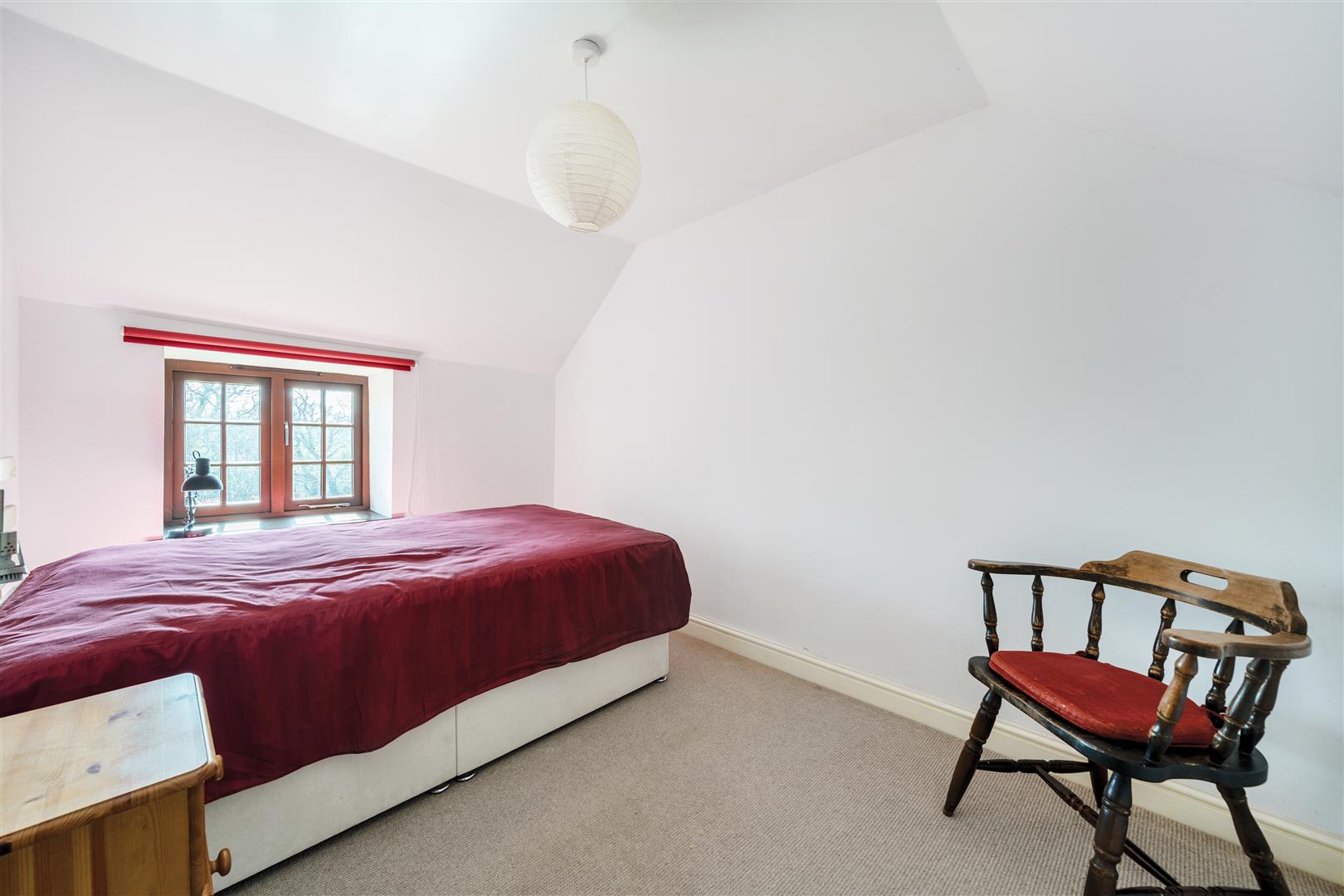 Double bedroom with window to front aspect. Further stairs rise to the landing