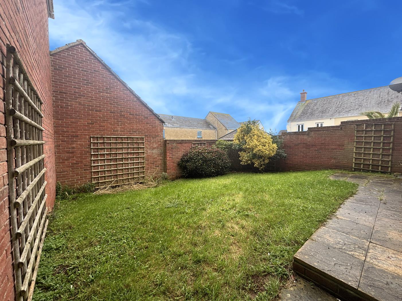 To the front of the property is a token lawned area with path leading to the front door. The gardens lie to the rear of the property being mostly laid to lawn with established shrubs and an area of patio. The gardens are fully enclosed by walling offering a safe area for children and pets and a good degree of privacy. There is a useful outside tap and a pedestrian access gate to the side leads to the driveway offering off road parking and leads to