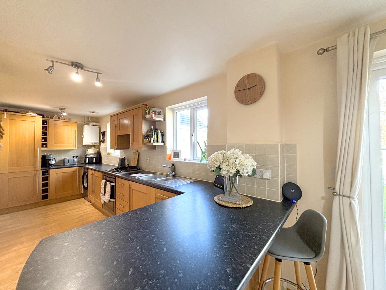 Downstairs, the kitchen/dining room is a real highlight — a spacious, sociable room designed with family life in mind. There is ample space for a dining table, doors opening directly onto the garden, and a breakfast bar that’s perfect for entertaining, homework time or busy mornings. A separate sitting room provides a calm and comfortable retreat, complemented by a convenient ground floor cloakroom. The property also benefits from a useful integral garage.