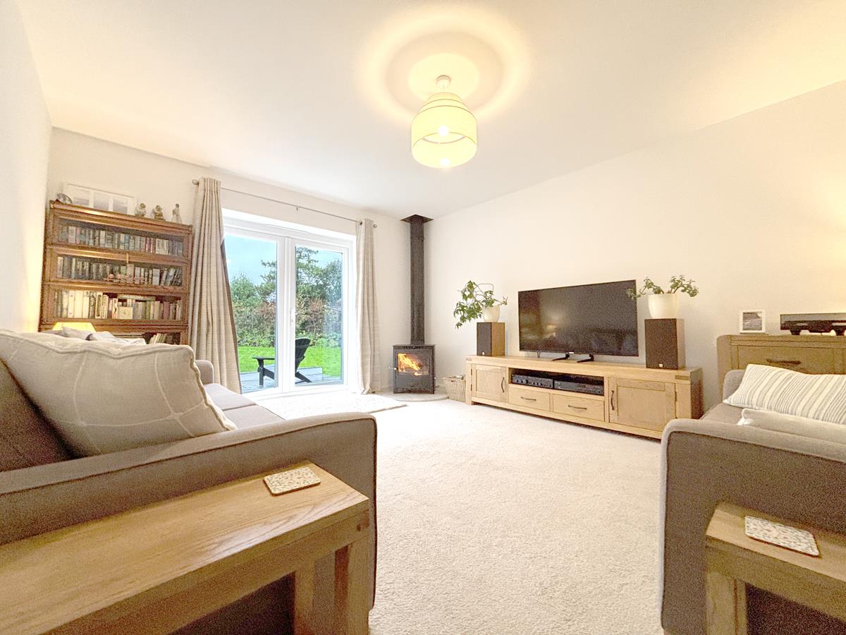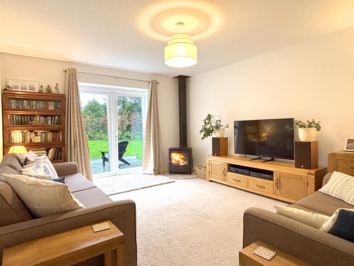 The spacious dual-aspect kitchen/breakfast room is perfect for relaxed family living and leads into a useful adjoining utility area. The generous lounge features a cosy log burner and French doors that open out to the rear garden - ideal for seamless indoor-outdoor living and year round relaxation.
