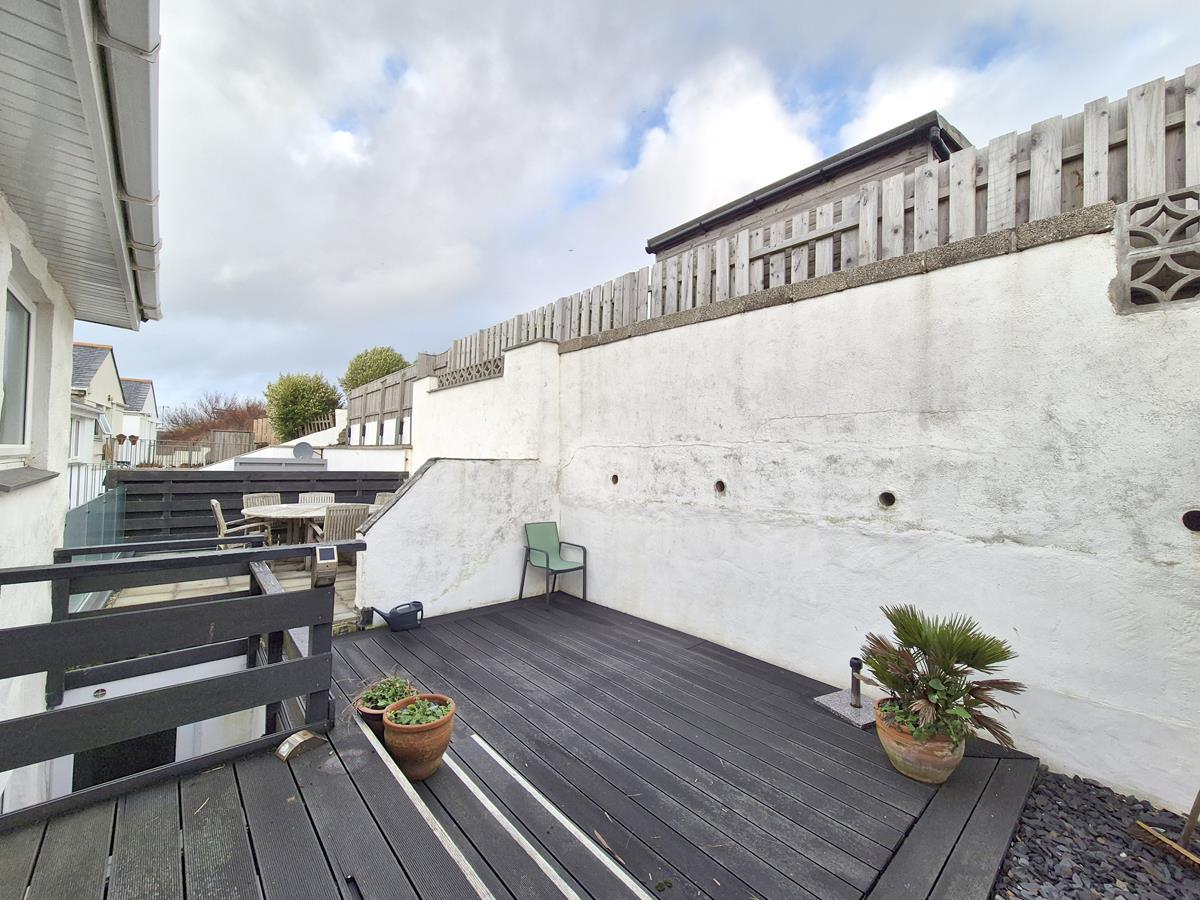 To the rear of the residence is a good size decked area and steps lead up to a further patio area which would seem ideal for alfresco dining. Sea views can be enjoyed from the patio area.