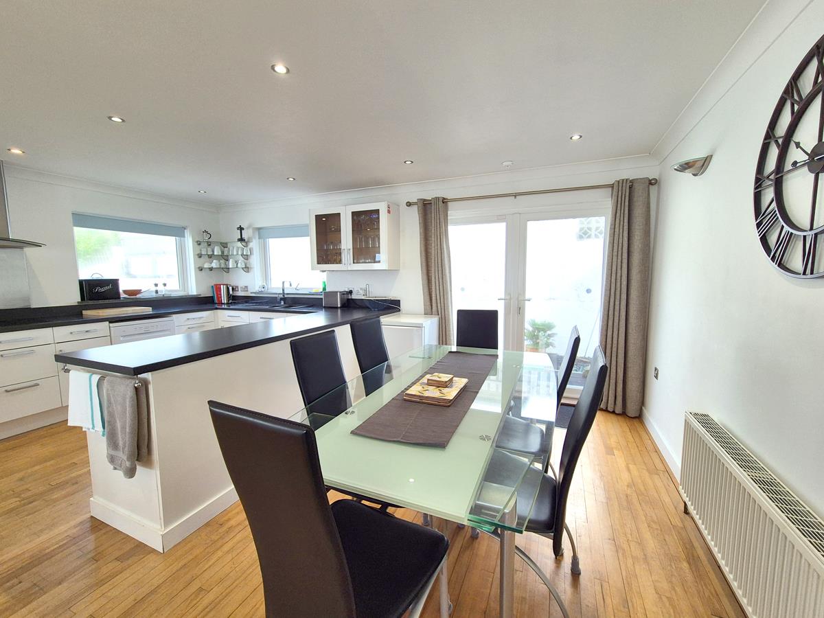 A fabulous open plan lounge, kitchen, diner which is triple aspect allowing one to take full advantage of the breathtaking sea and coastal views. Bifold doors open onto the balcony area which as previously mentioned would seem ideal for a morning coffee enjoying the marine vistas. French doors open onto the rear courtyard and a wood burner on an attractive hearth acts as a focal point for the room. There is access to the loft.