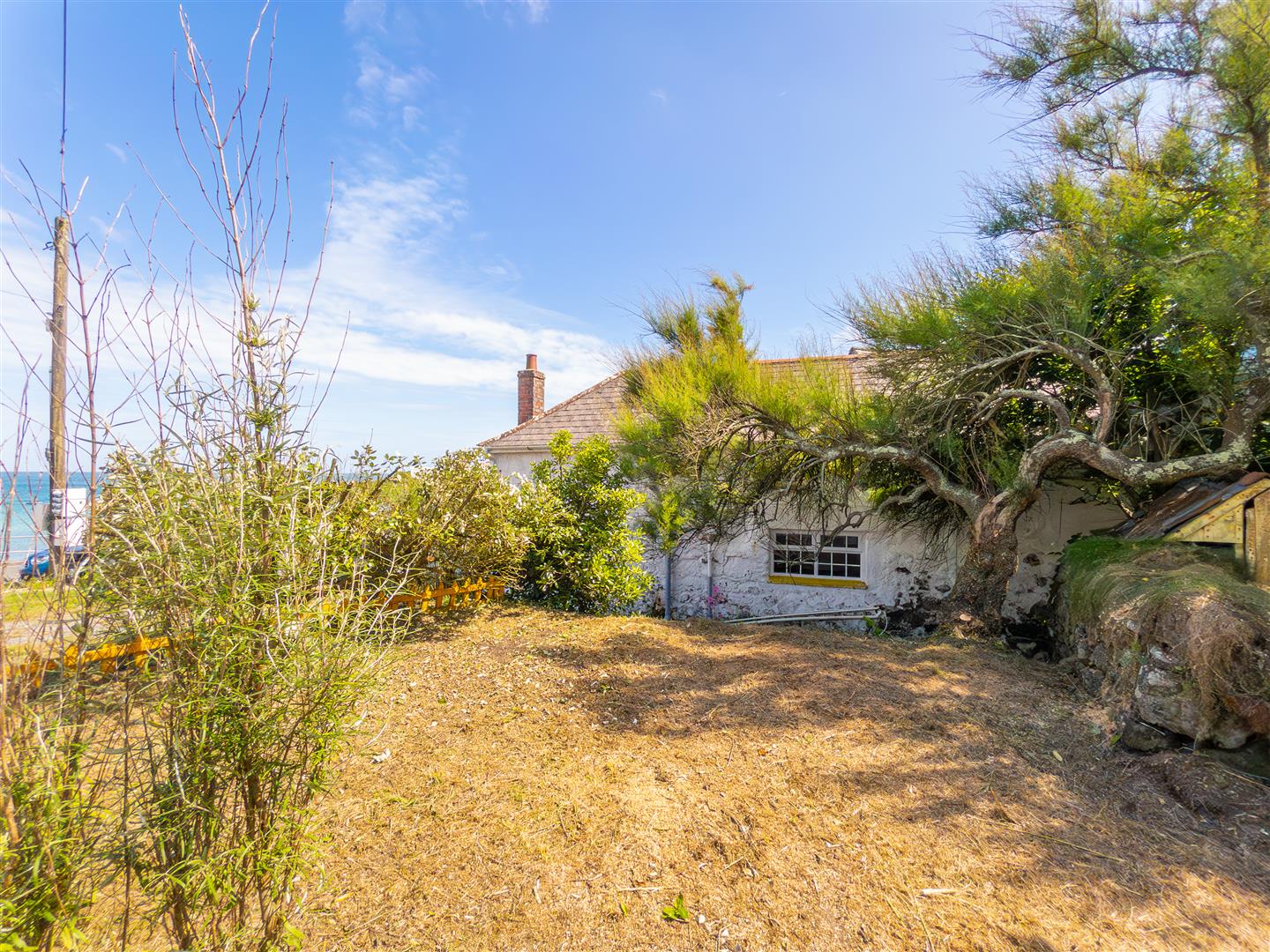 To the front of the property is a parking area, as well as a low maintenance garden area where you can sit and enjoy a sea view. To the side is small yard and a useful covered storage area. Whilst from the front a pedestrian access gate leads to a path alongside the adjacent stream, where a footbridge leads to a fantastic 'secret seating area' where you can relax and listen to the steam bubble past. Steps lead up from here into the main garden area, which is laid to lawn with established shrubs and bushes and a pedestrian access gate to the side. There is an adjacent additional area of parking.