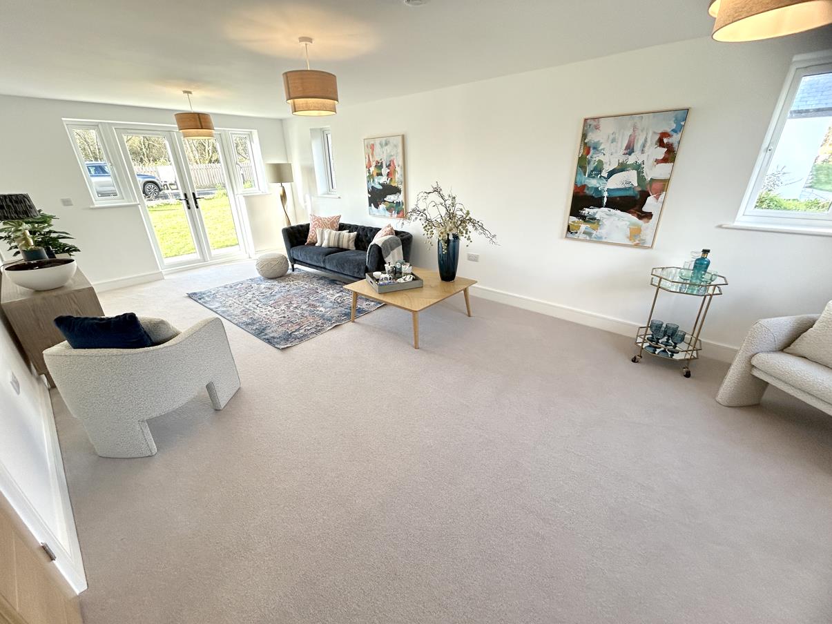 This high-quality four bedroom detached home offers beautifully balanced, light-filled accommodation throughout. From the moment you step into the spacious hallway, the sense of quality and care is immediately apparent. The large triple-aspect lounge provides an inviting space to relax, complete with double doors that open directly onto the garden.