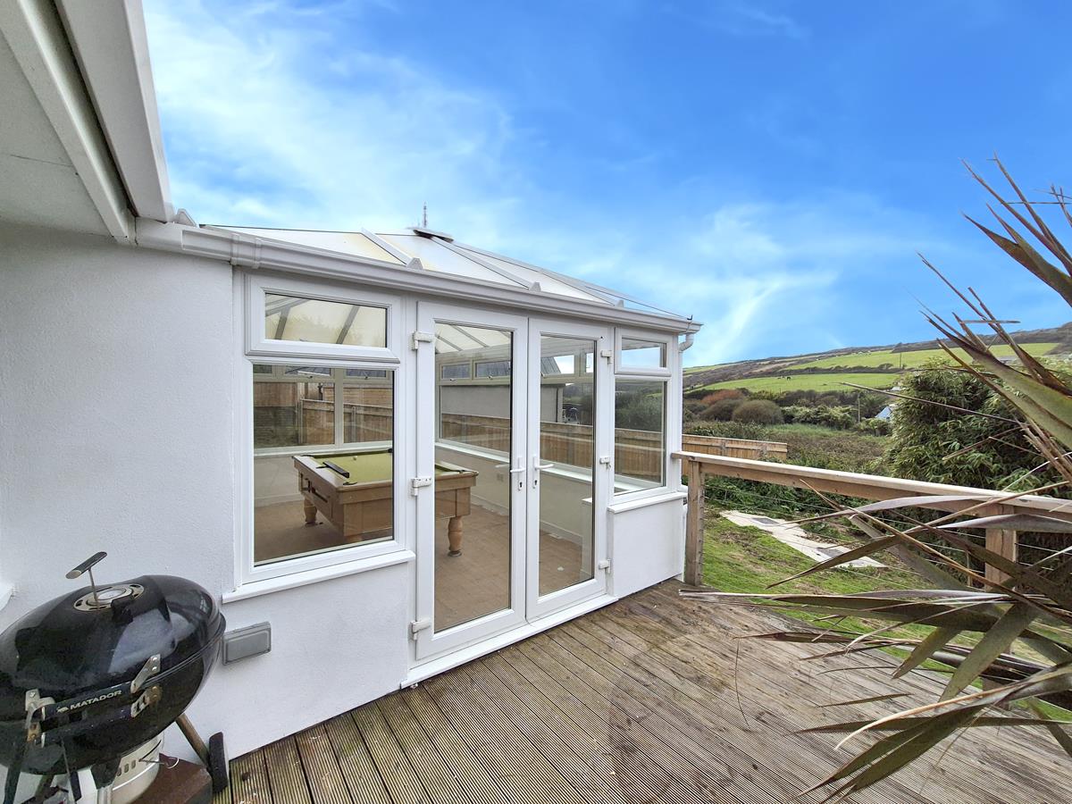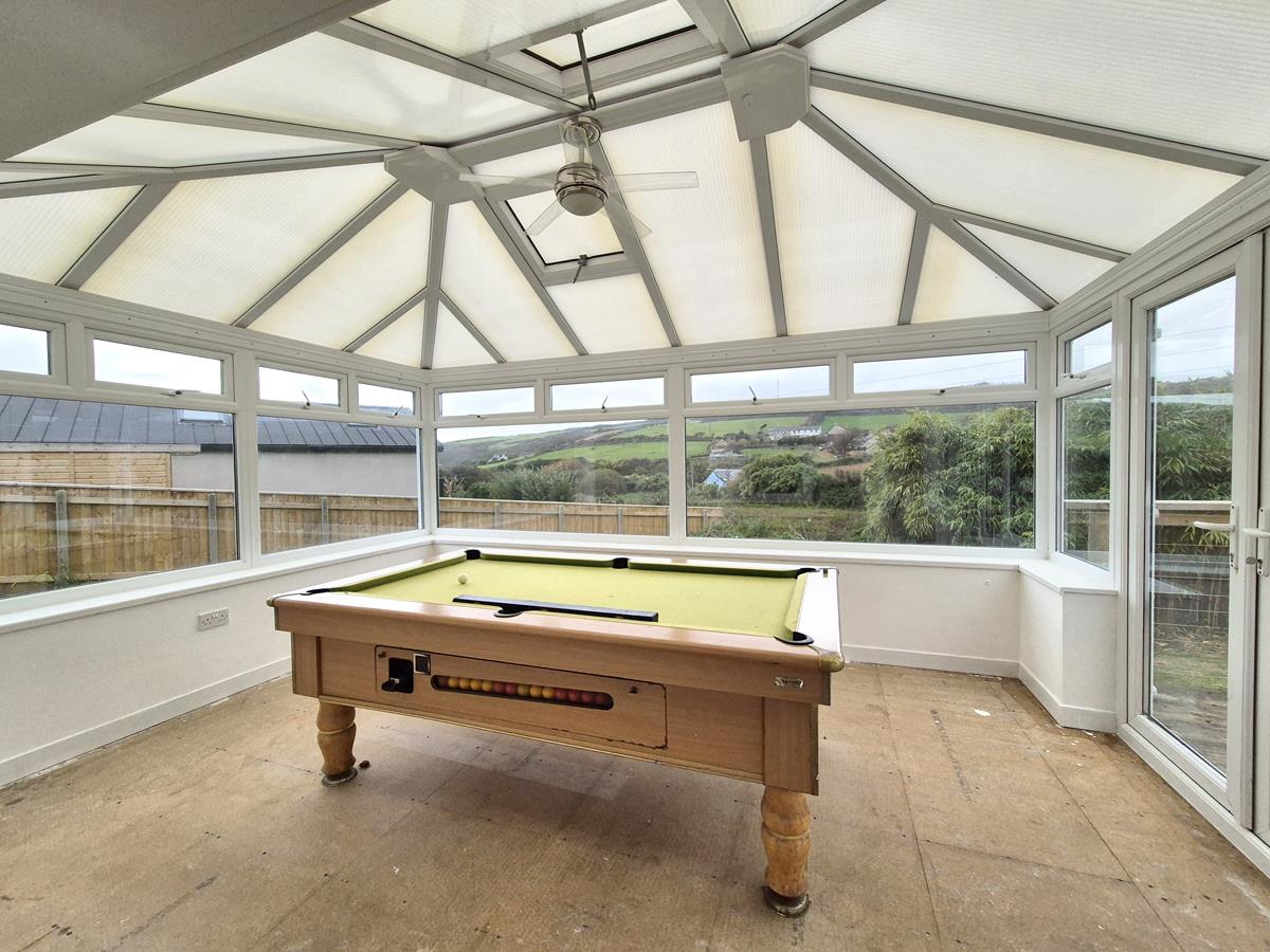 A wonderful versatile space which has been used as a dining room and games room by the present vendors. With windows to the rear and both sides offering a lovely rural view and double doors opening onto the deck.