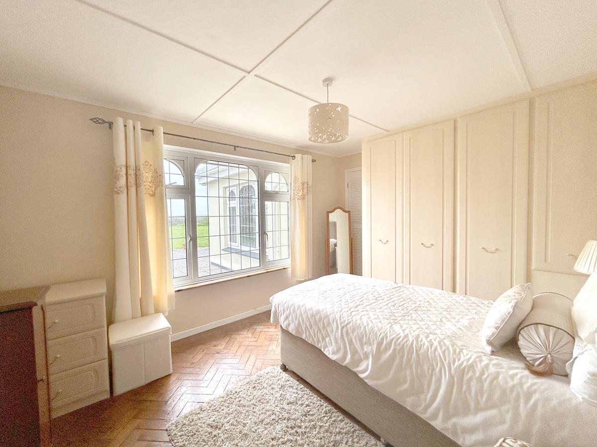 A super dual aspect bedroom with extensive glazing and views over miles of rolling countryside and onwards to the sea in the distance and the room has smart wood effect flooring.