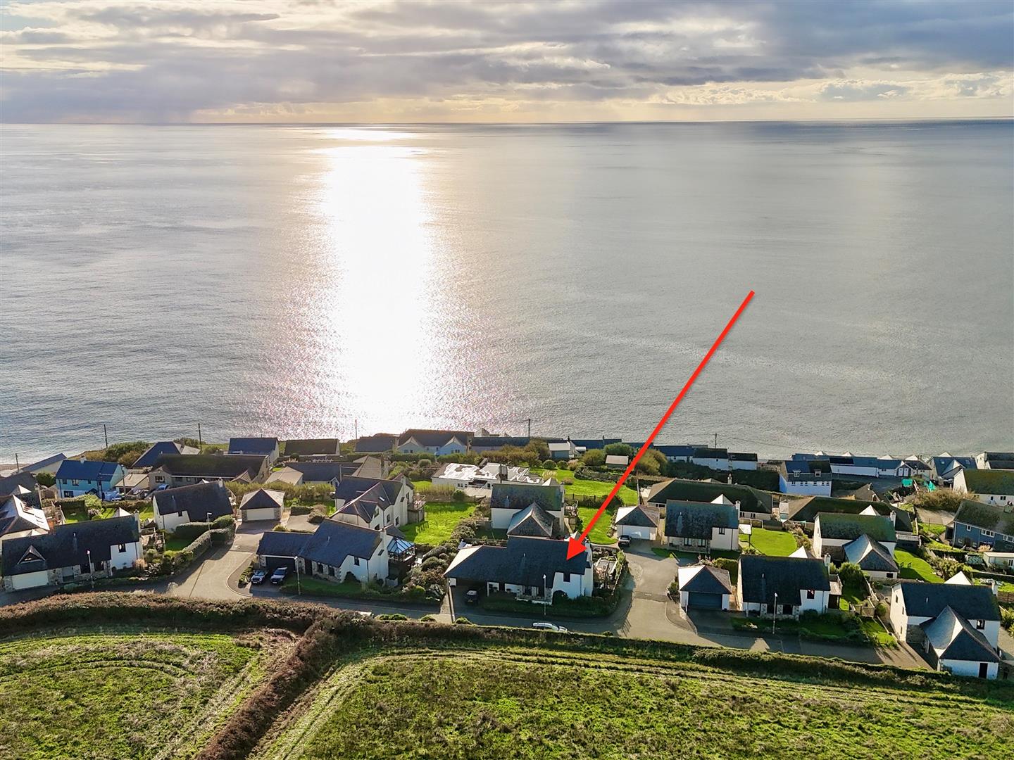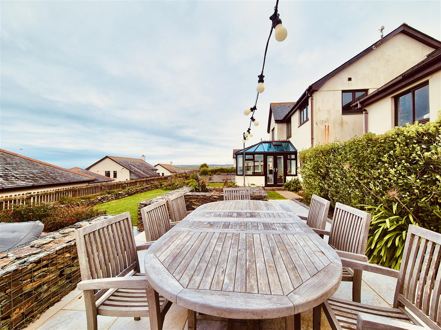 With outlook through the conservatory, between other properties and out to sea. A door to the conservatory.