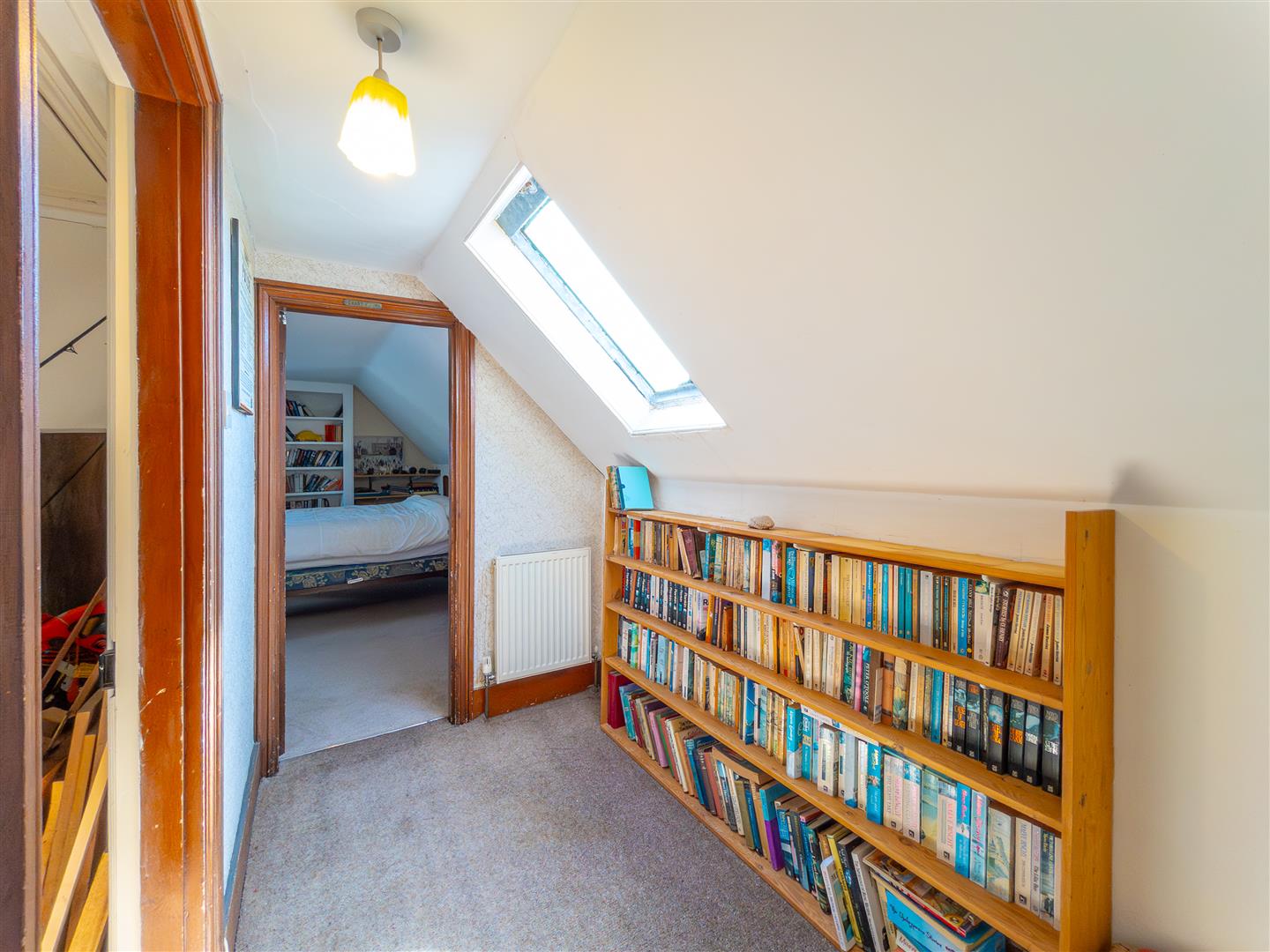 With balustrade, frosted skylight, some restricted head room, doors to bedroom five and bedroom six/store room.