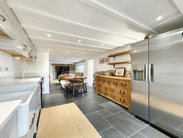 Tastefully enhanced during our owners tenure the semi-detached cottage has firmly retained its soul, with a wealth of character features including a striking feature fireplace, beamed ceilings, slate flooring and authentic exposed stone work. These are seamlessly complemented by a stylish, contemporary, open plan living space with underfloor heating and a stunning sun room with oak beams, a vaulted ceiling and doors opening out invitingly into a sheltered patio area - perfect for morning coffee or an ‘al fresco’ lunch.