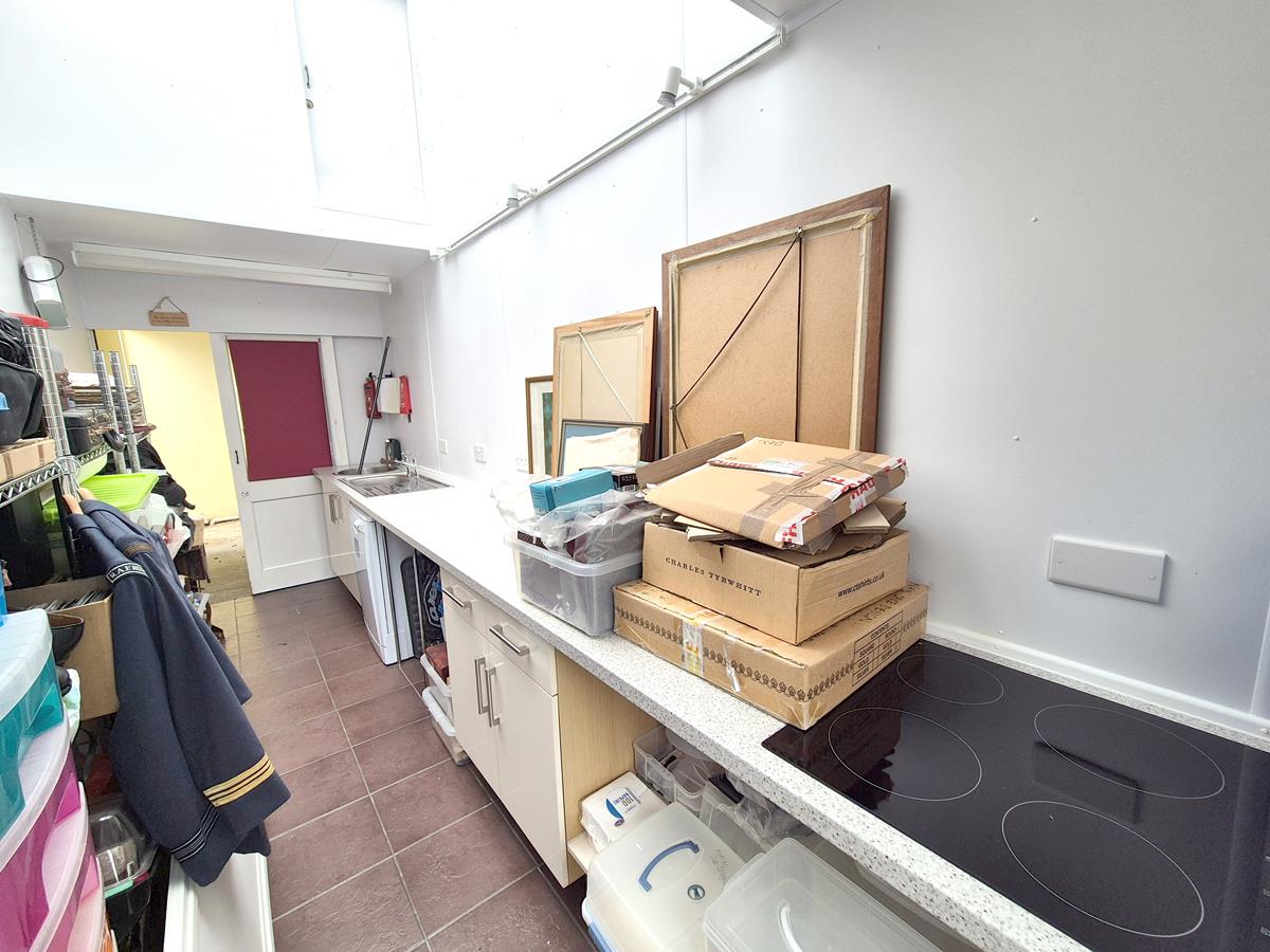 With door and outlook to the front, door to the rear garden. Comprising working top surfaces with cupboards and drawers under and wall cupboards over, Belfast sink and space for a washing machine. The room has a tiled floor.