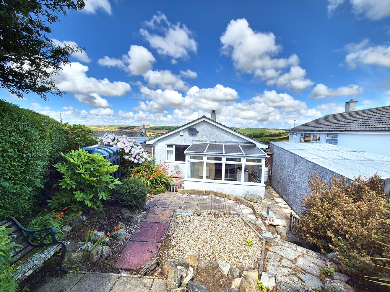 Situated on the outskirts of the sought after Cornish fishing village of Porthleven, is this two bedroom. detached bungalow. The residence, which benefits from oil fired central heating and double glazing enjoys fantastic views over open countryside and towards Tregonning Hill in the distance. In need of some updating to realise its full potential. There are gardens to the front and rear, whilst to the side a driveway provides parking for a number of cars and leads to a garage.