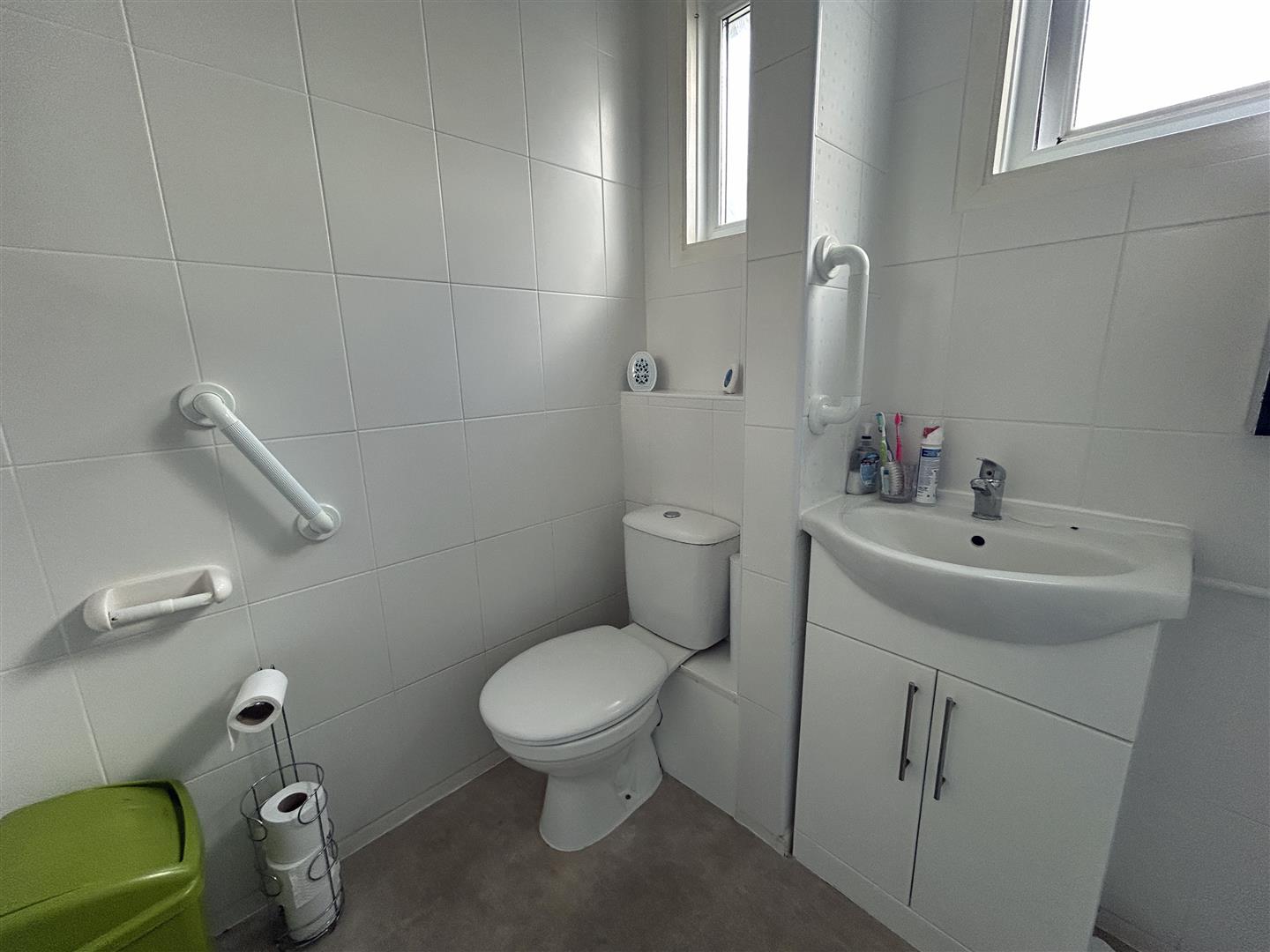 Beautifully appointed with walk-in shower cubicle with glass screen and easy clean splashbacks with Mira electric shower over, wash hand basin set into a vanity unit, close couple W.C., tiling to the floors, two obscured windows to the rear aspect, anti slip stone effect flooring, ladder style radiator, two mirrored medicine cabinets, tiling to the walls.
