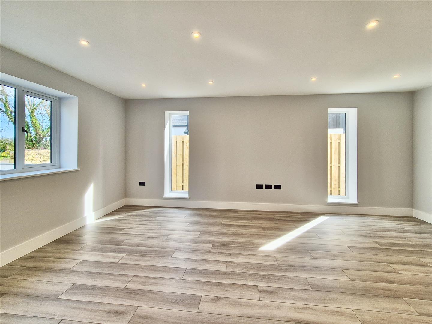 A beautiful dual aspect room with practical hard flooring, T.V point, black sockets and light switches and window to front and two vertical windows to side offering a lovely calm space in which to relax.