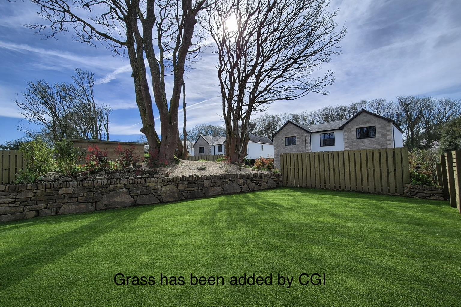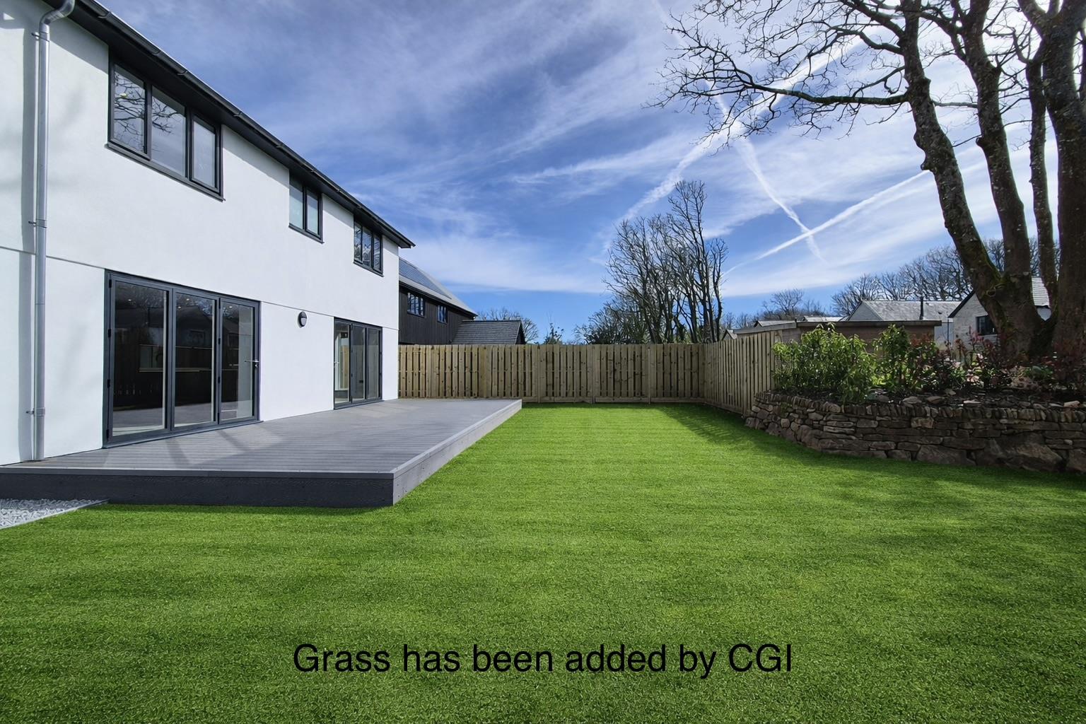 To the rear composite decking with the remainder of the garden to be laid to lawn.