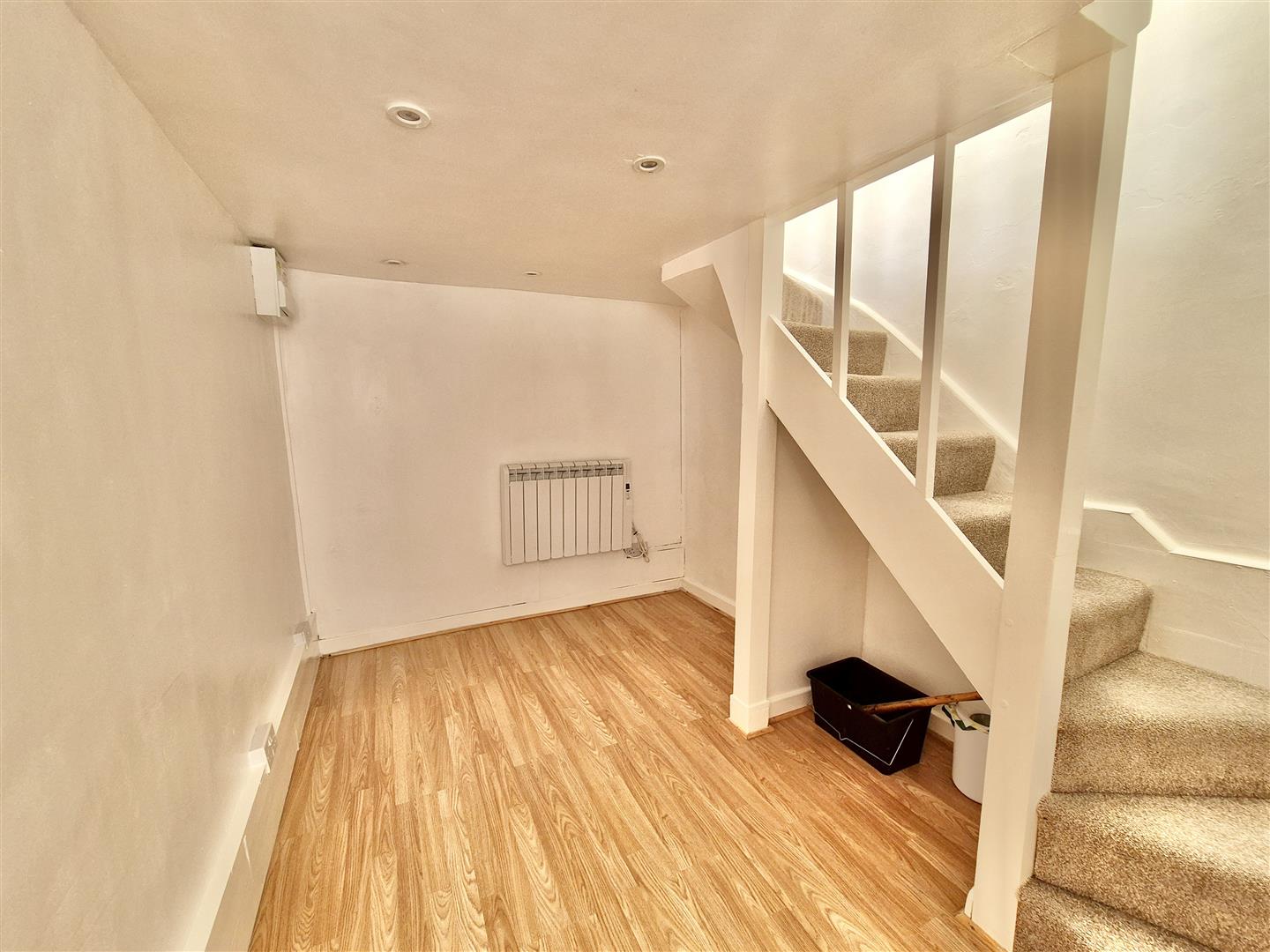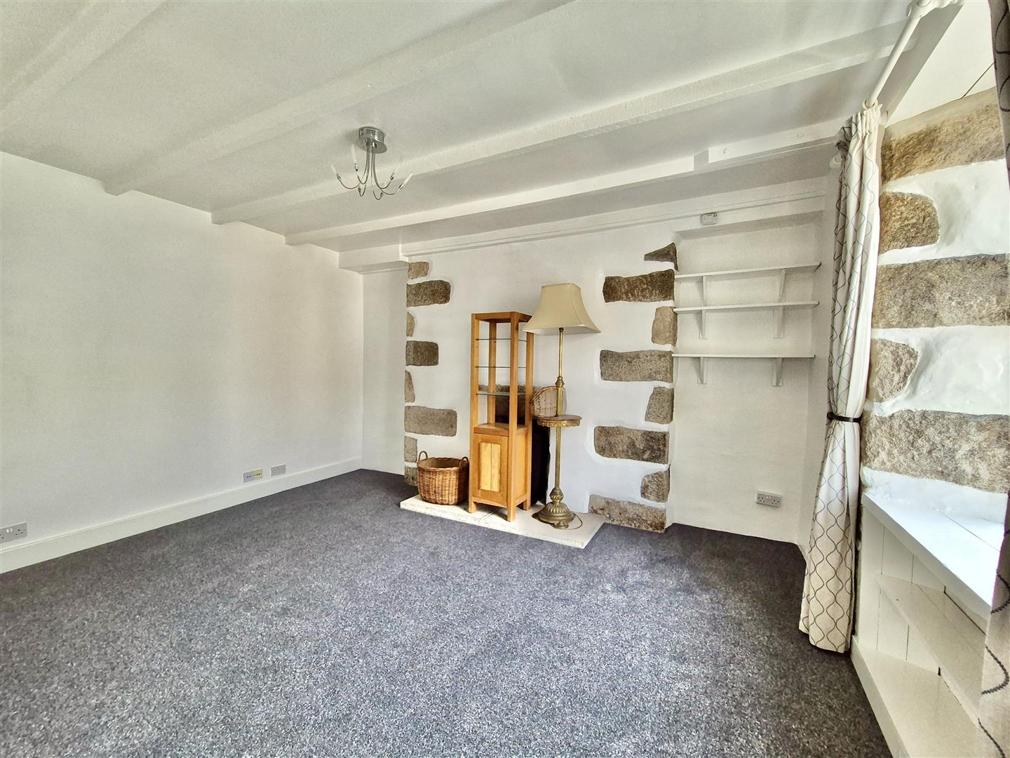 With outlook to the front, having a feature fireplace with hearth and exposed stone surround which is not in working order. There is alcove shelving to either side of the fireplace and an outlook with window seat to the front aspect. There is a built-in understairs cupboard, beamed ceiling and opening to kitchen.