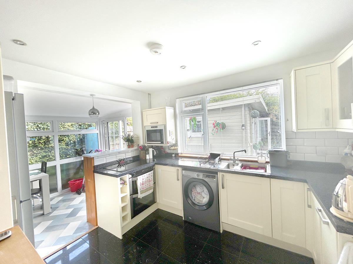 A lovely airy space being triple aspect with views out over the garden and opening to kitchen.