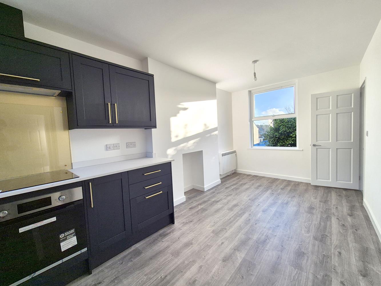 A dual aspect room with outlook to the front and rear. The kitchen area comprising an attractive kitchen incorporating a sink unit with drainer and mixer tap over, cupboards and drawers under and wall cupboards over. Built-in appliances include an oven with hob and hood over and a fridge freezer. There is a built-in cupboard and an understairs cupboard. Opening to