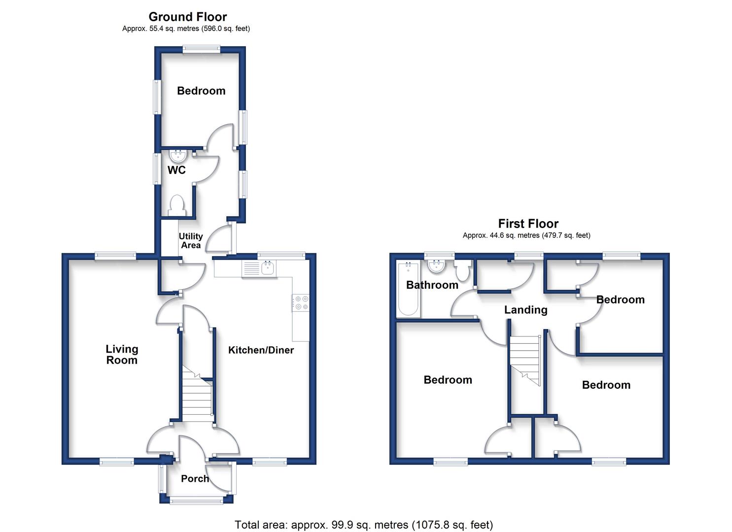 In brief, the accommodation comprises an entrance area, hall, lounge, kitchen/diner, utility area and completing the ground floor a study/bedroom four. On the first floor is a bathroom and three further bedrooms.