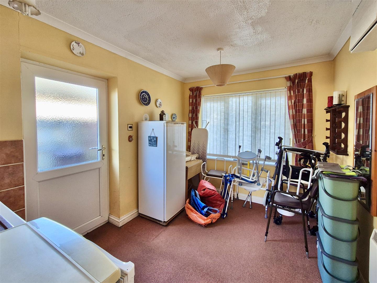 A good size kitchen/diner with outlook to the side and having a tiled floor. The kitchen area comprising working top surfaces incorporating a one and a half bowl sink unit with drainer and mixer tap over, cupboards and drawers under and wall cupboards over. There is space for an oven with hood over, dishwasher, space for floor standing fridge freezer and the kitchen also provides a central breakfast bar area. Door to