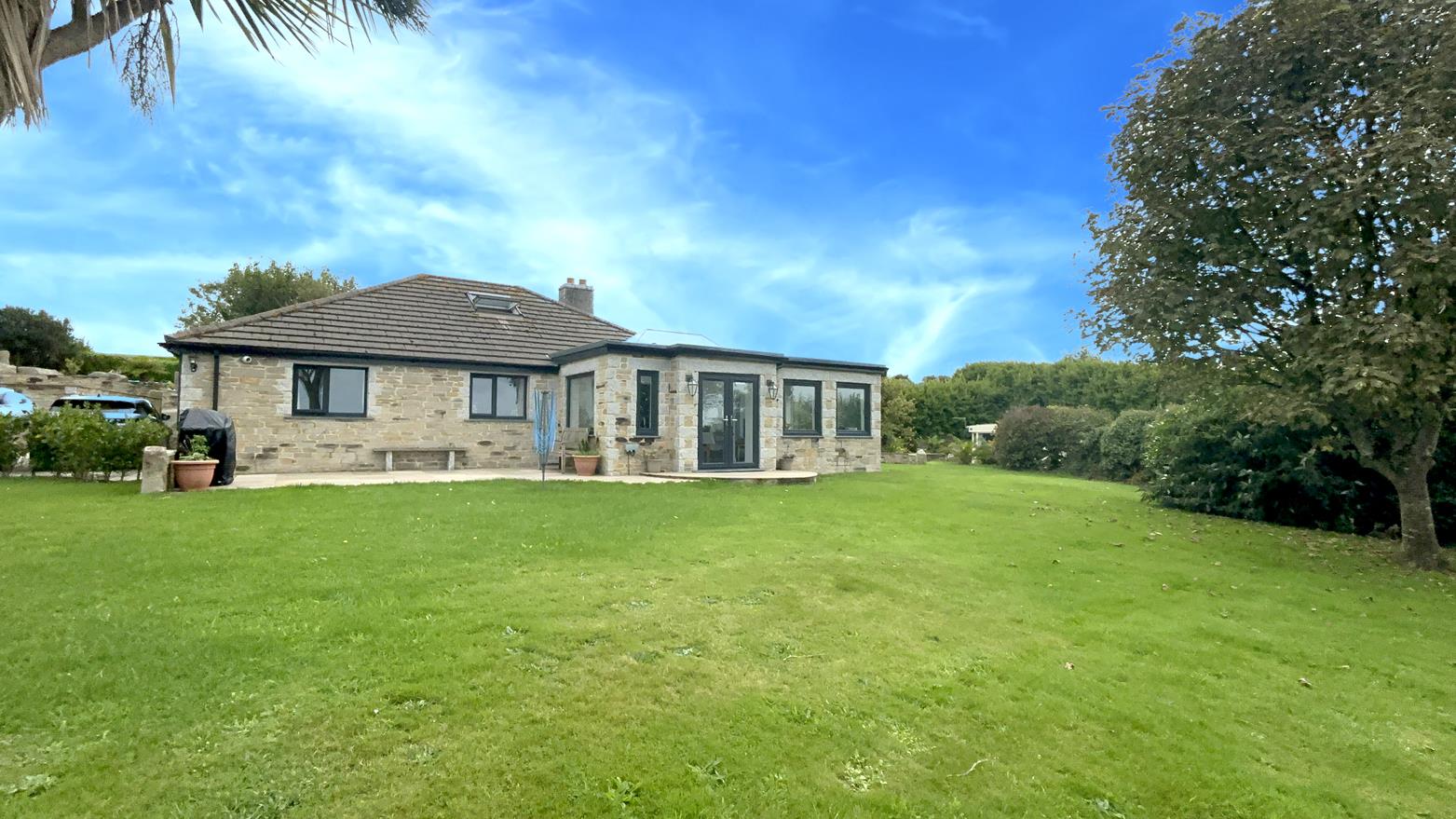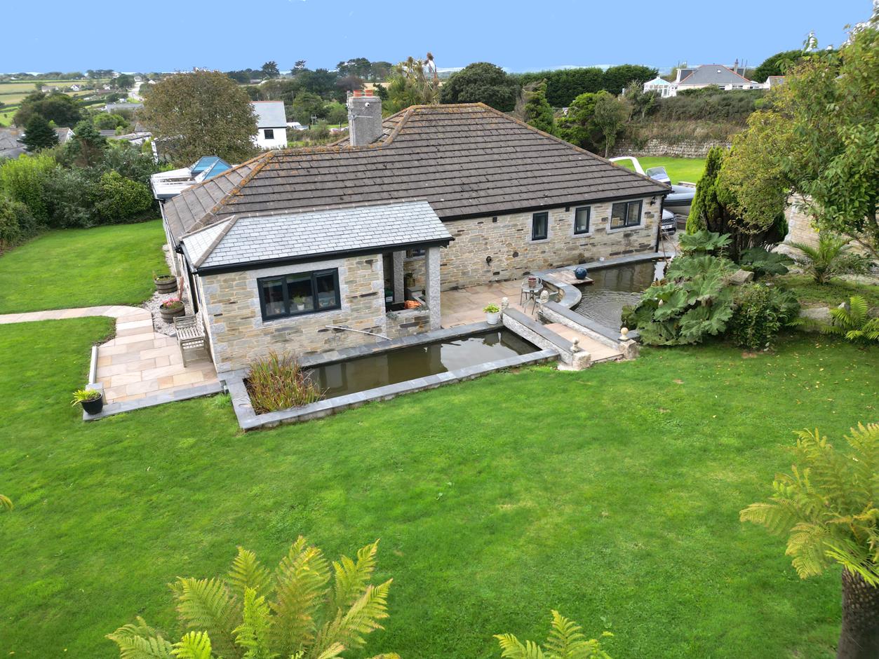 Leave Helston on the A394 heading towards Penzance. Just after the large green Germoe Cross Roads road sign turn left into the driveway which can be identified by a Christophers For Sale Board.