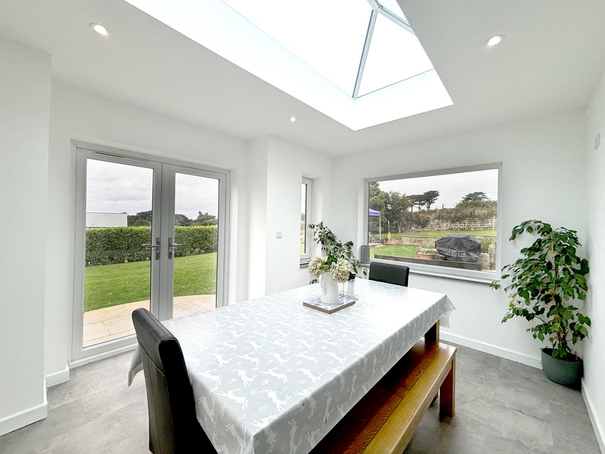 A fabulous addition, this light and airy room wraps around the side and rear of the property with feature atrium style roof lights and offering access to the garden.