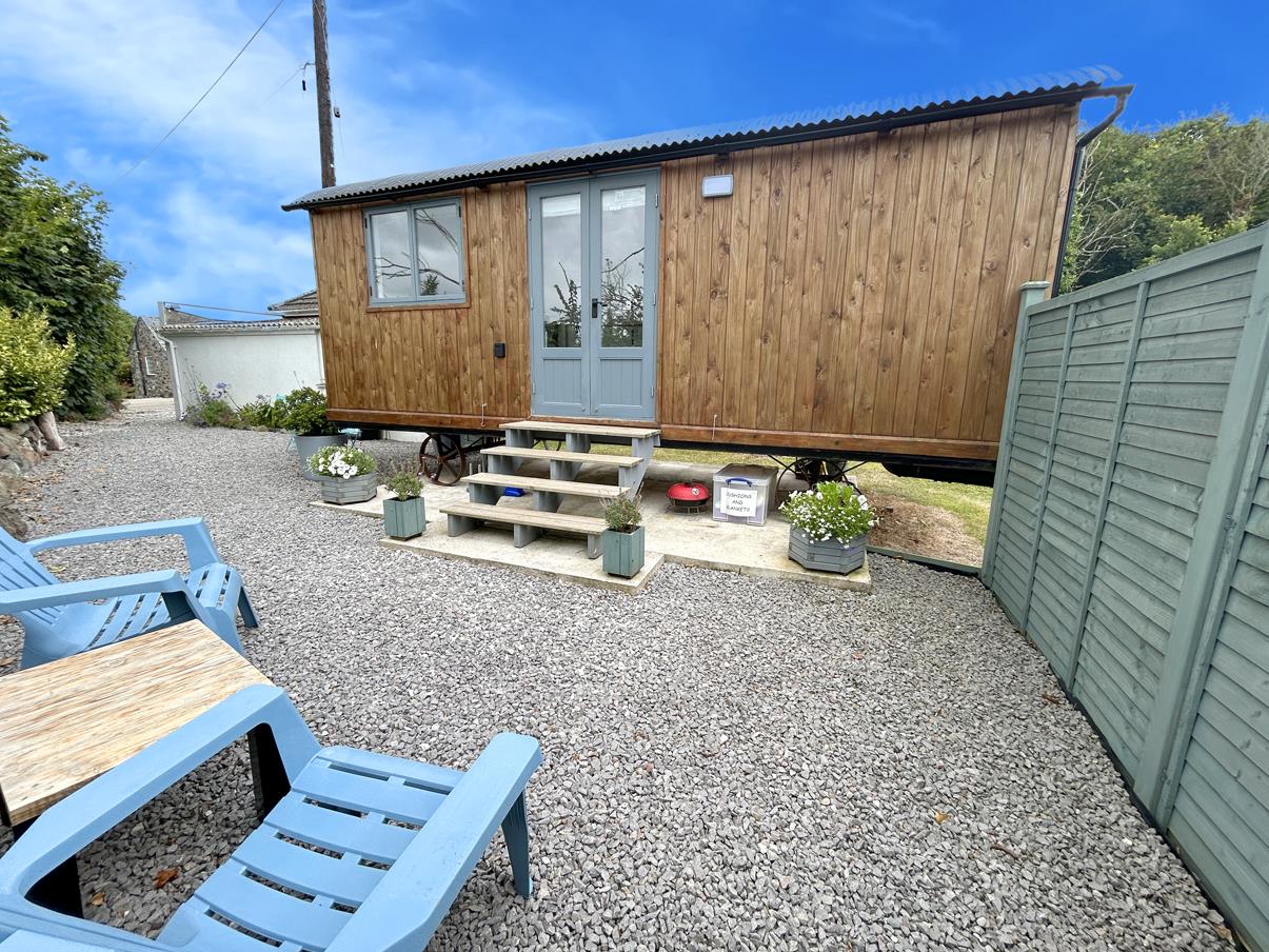The shepherd's hut is fully equipped with items including bedding, crockery, cutlery and basic cooking equipment.