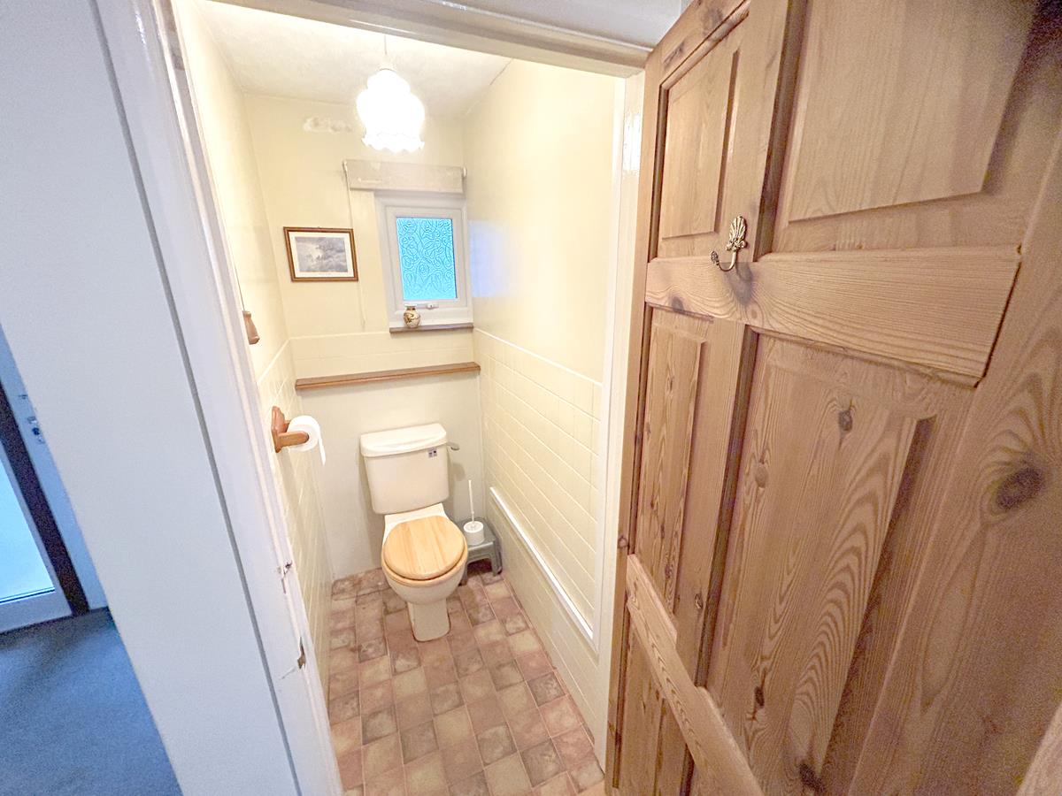 Having a low-level w.c, partially tiled walls and an obscure glazed window to the front aspect.