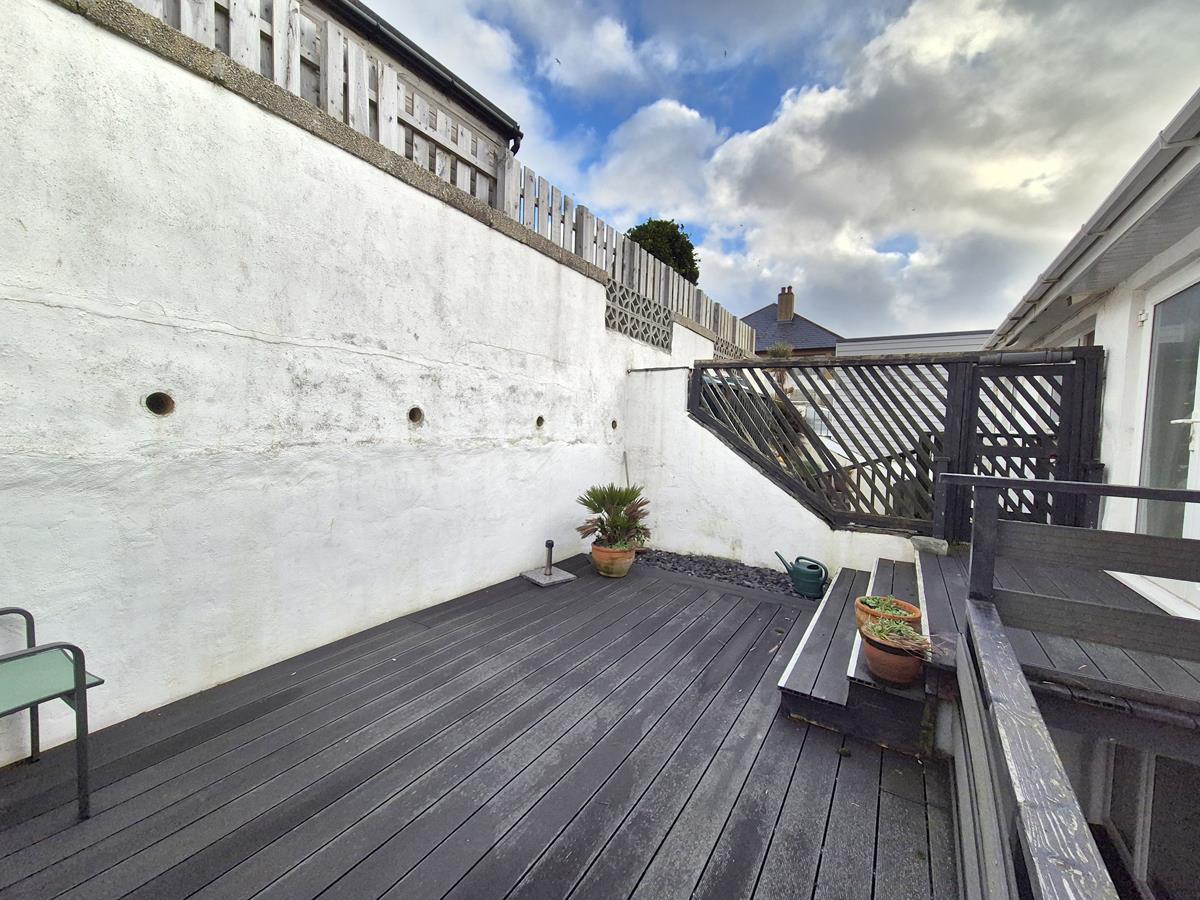 To the rear of the residence is a good size decked area and steps lead up to a further patio area which would seem ideal for alfresco dining. Sea views can be enjoyed from the patio area.