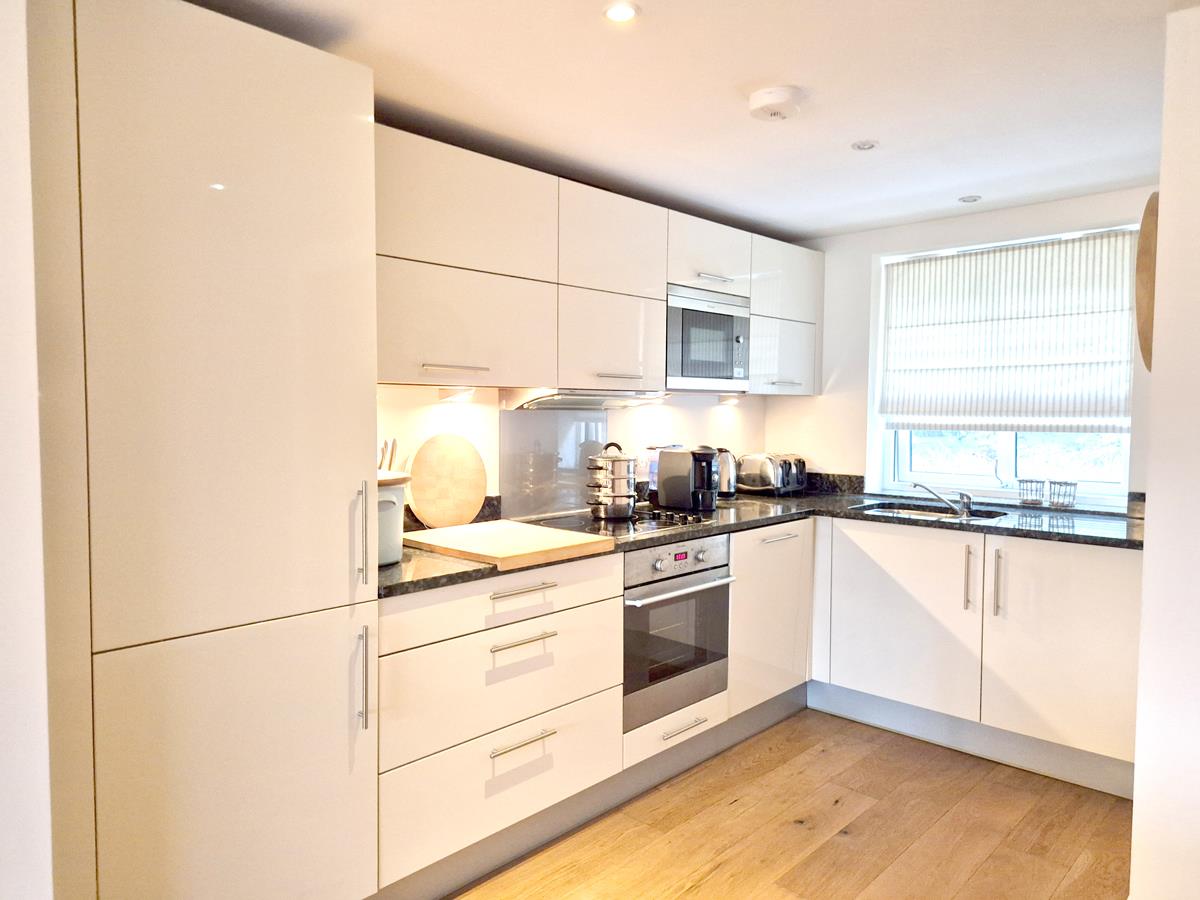 Comprising an attractive kitchen with stone working top surfaces incorporating a one and a half bowl inset sink unit with mixer tap over, cupboards and drawers under and wall cupboards over. An array of built-in appliances including an oven with hob and hood over, microwave, dishwasher and fridge/freezer.