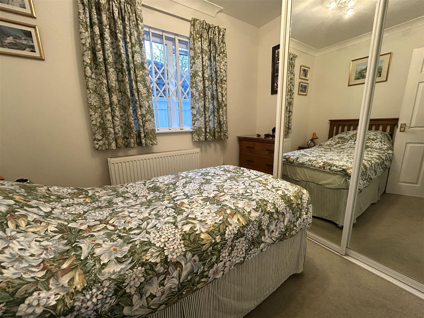 With a window to the front aspect overlooking the garden and built-in wardrobes with hanging rails and drawers, sliding doors which are part mirrored, door to