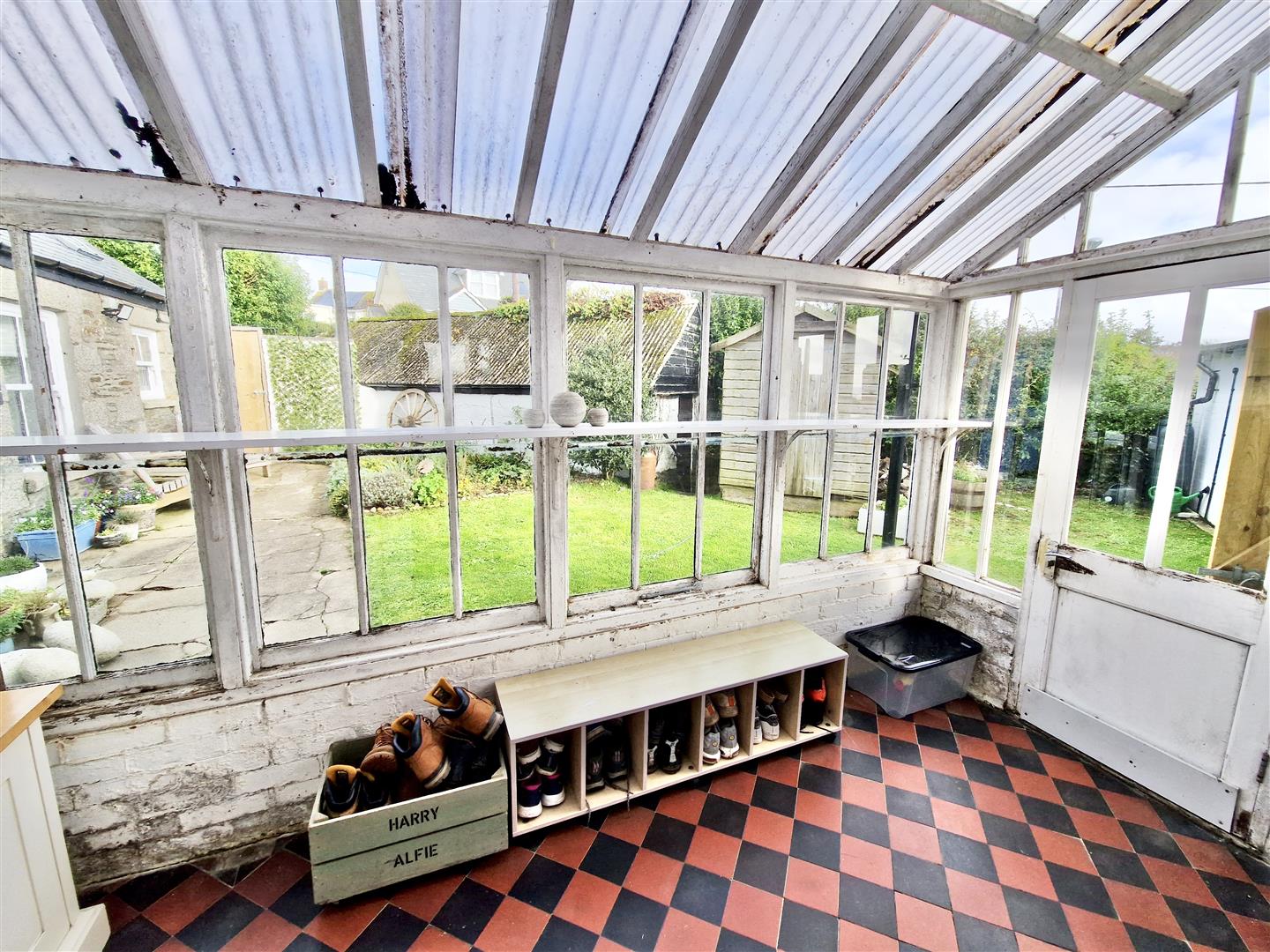 With a tiled floor, an outlook over the rear garden and a door to the outside.