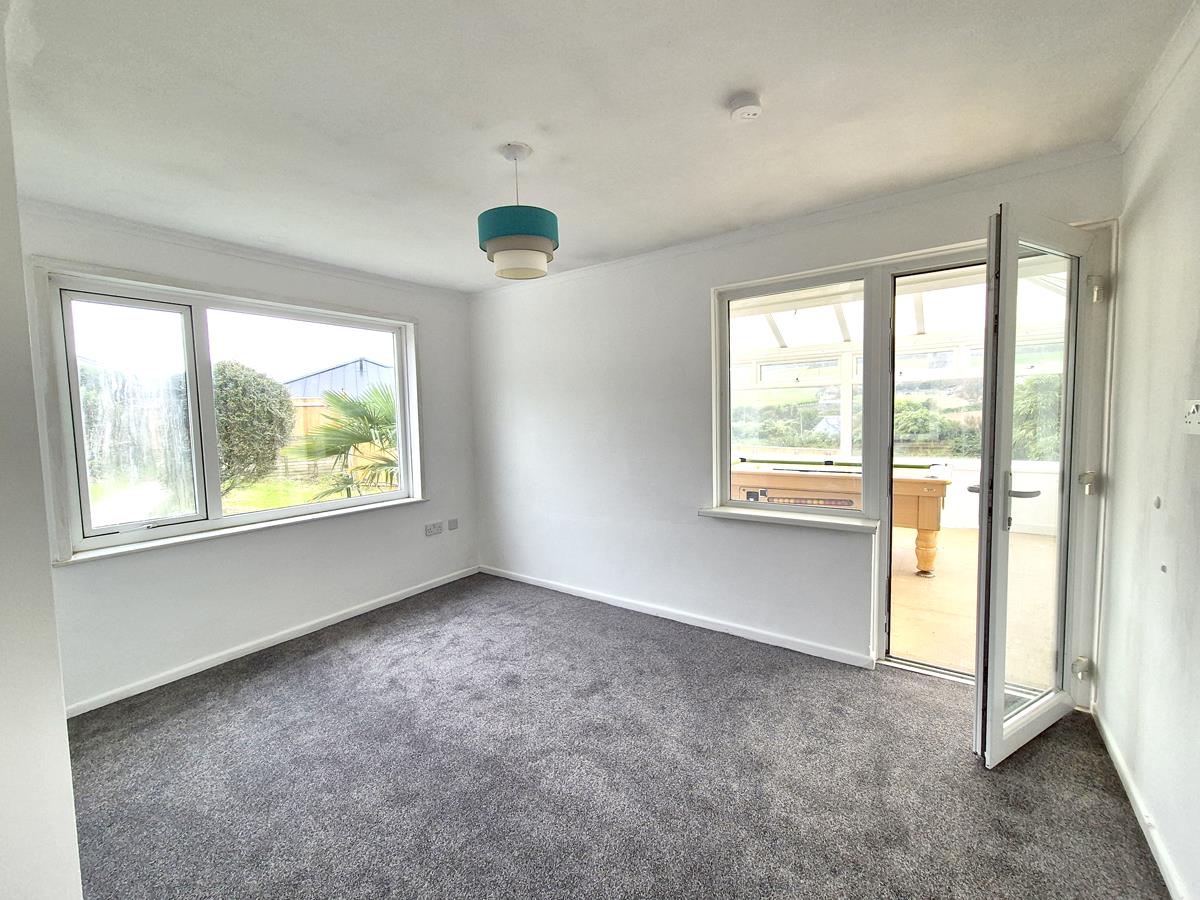 A wonderful versatile space which has been used as a dining room and games room by the present vendors. With windows to the rear and both sides offering a lovely rural view and double doors opening onto the deck.