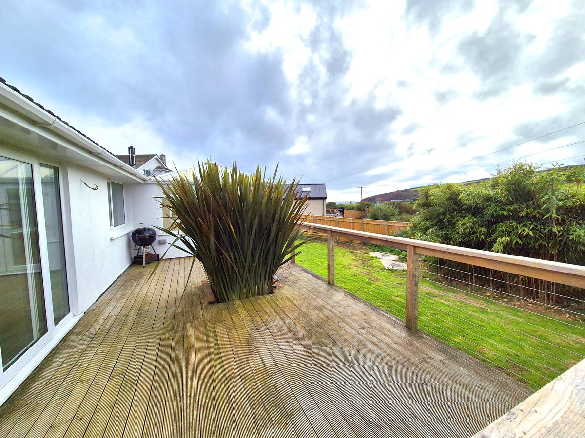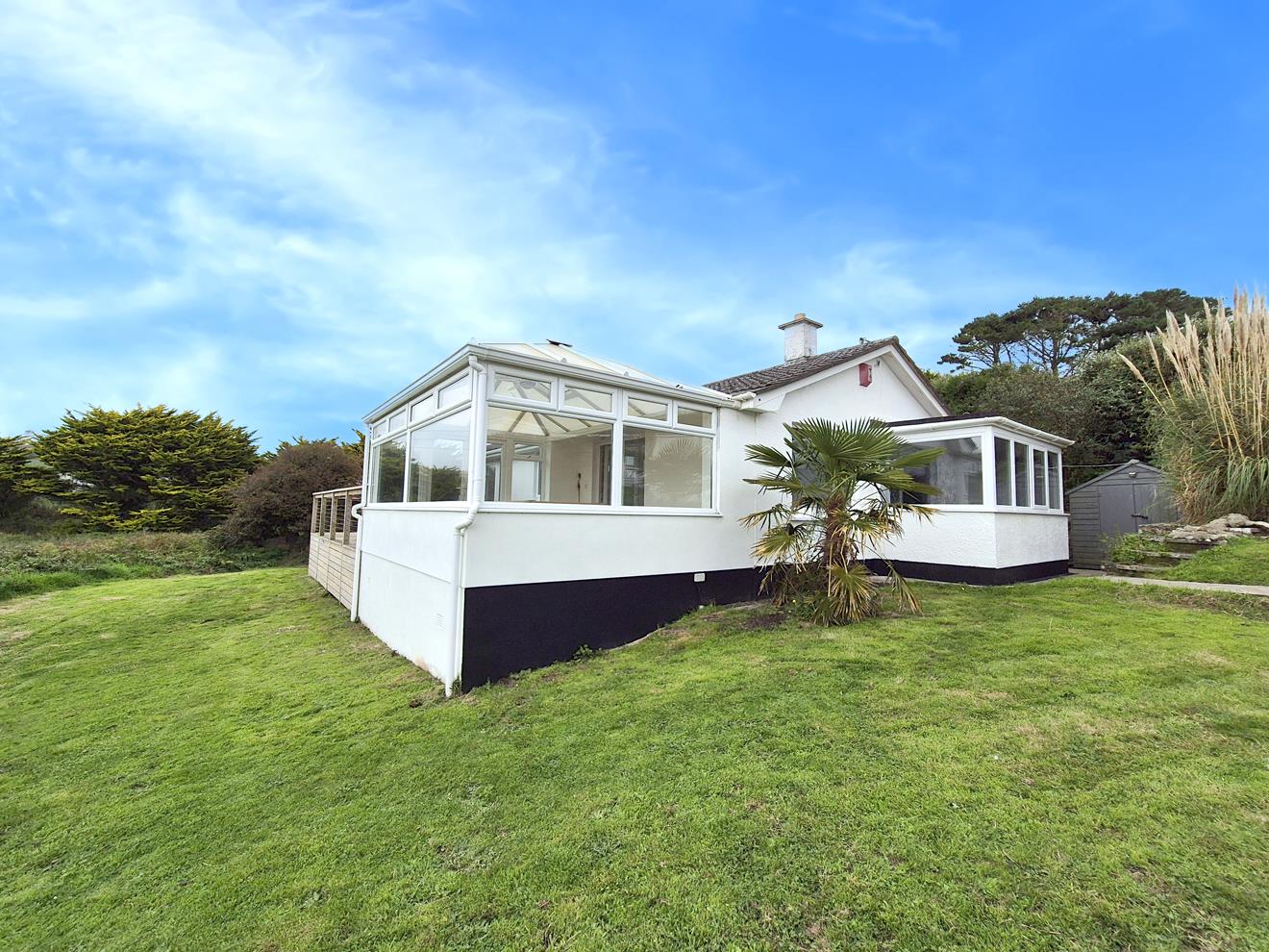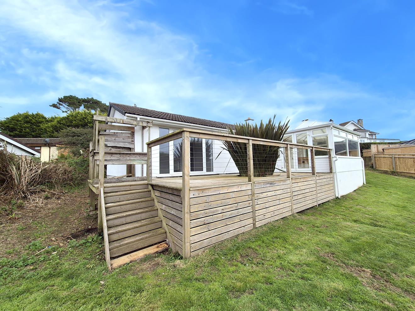 The property is approached by a driveway leading to a parking/turning area and a garage of sectional construction. The gardens are a real feature of the property which sits beautifully in its plot. The gardens are mainly laid to lawn and enjoy a good degree of privacy and an attractive outlook and are a blank canvas for a keen gardener. There is a useful timber shed to the rear. A fantastic feature is the raised deck, accessed from both the sun room and master bedroom which enjoys a gorgeous outlook across the surrounding countryside towards the sea. The perfect place to entertain, enjoy an al fresco supper or simply relax listening to the waves rolling onto the shore in the distance.