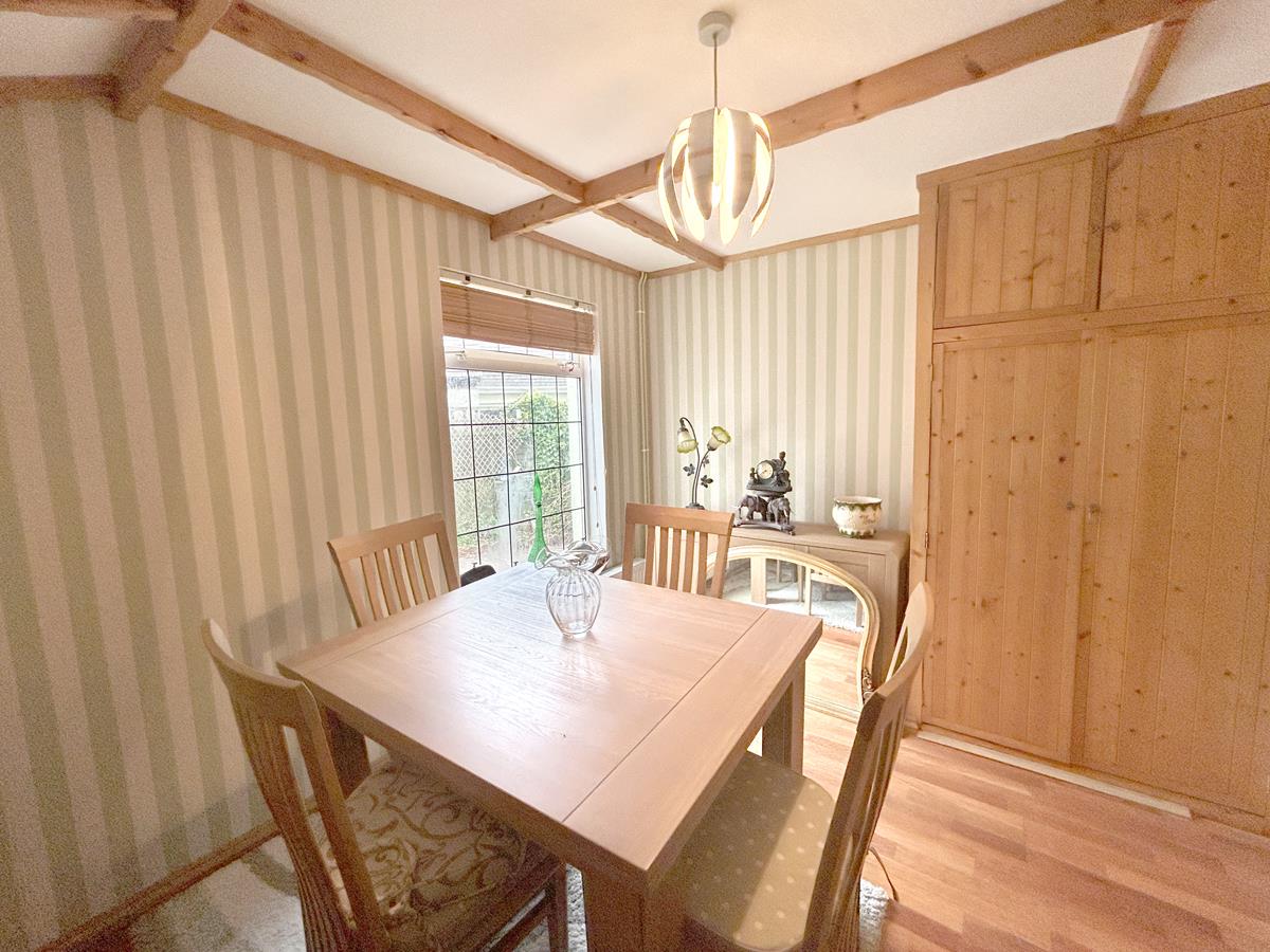 With beam effect ceilings, attractive wood effect flooring and a window to the side aspect.