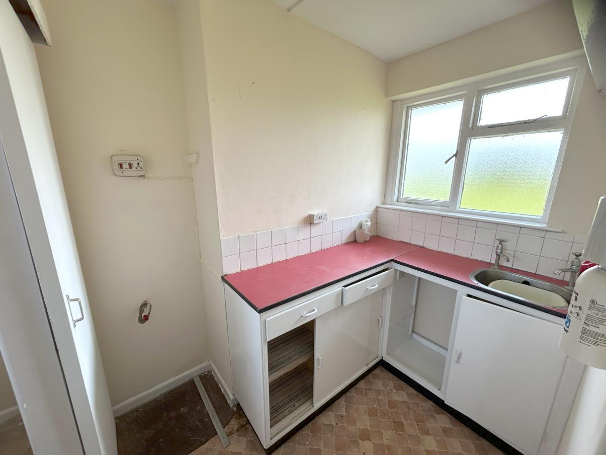 With working top surfaces incorporating a sink with tiled splashback with cupboards and drawers under. Space is provided for a cooker, whilst there is vinyl flooring, obscure glazed window to the rear aspect and a sliding door to bathroom.