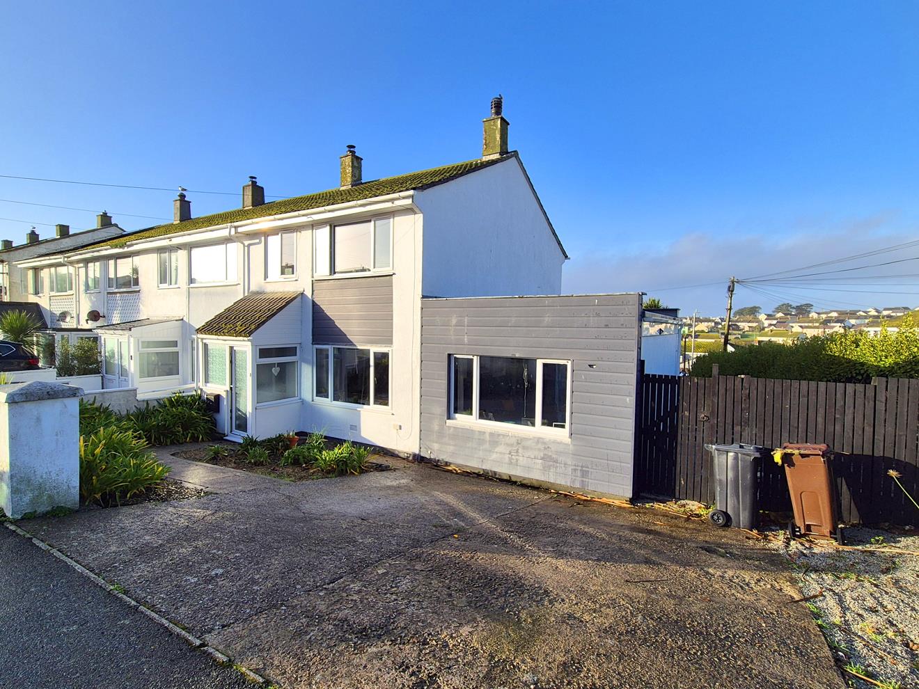 With outlook over the village towards open countryside and Tregonning Hill in the distance.